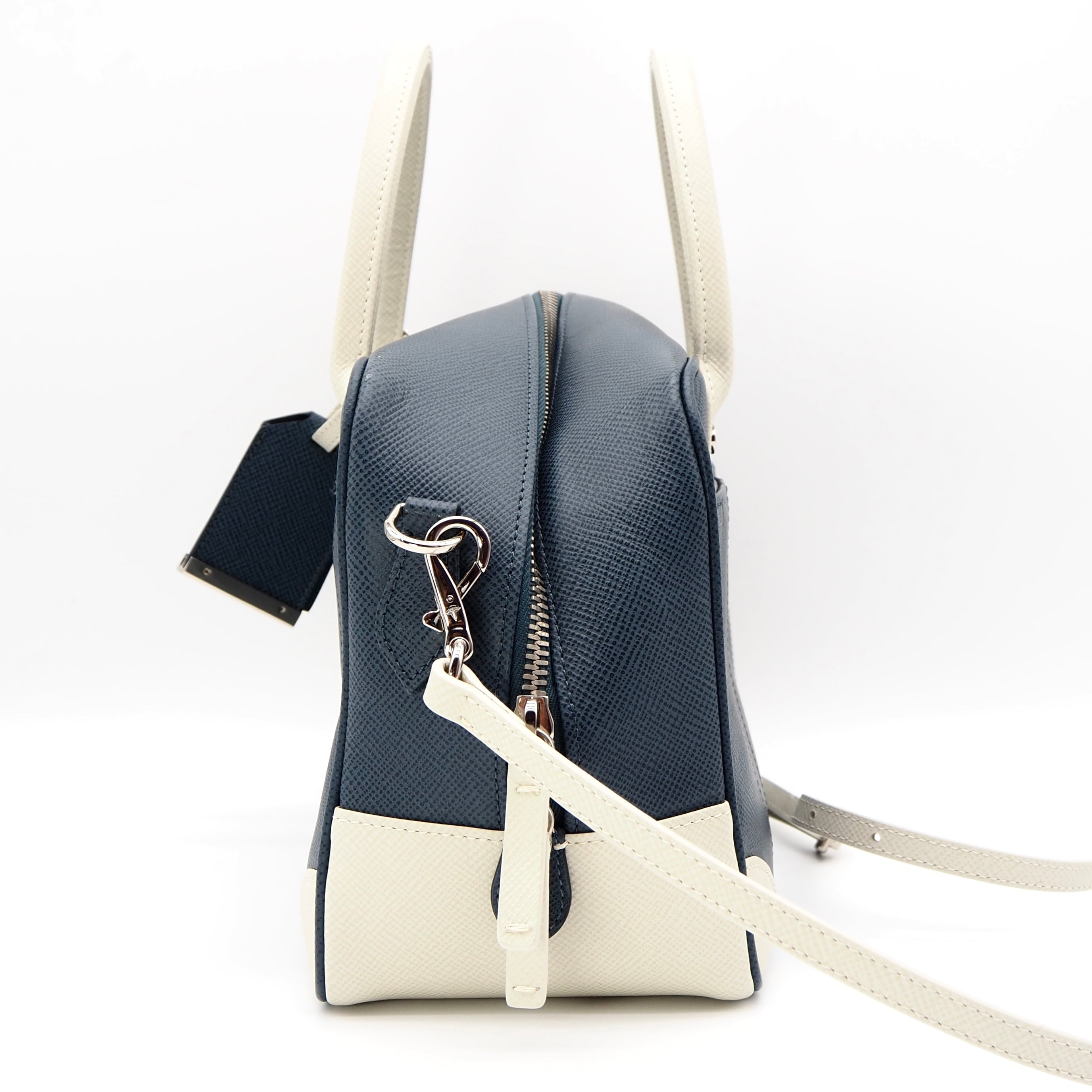 バイカラーが品良く、コーディネートのアクセントとなる一点です。