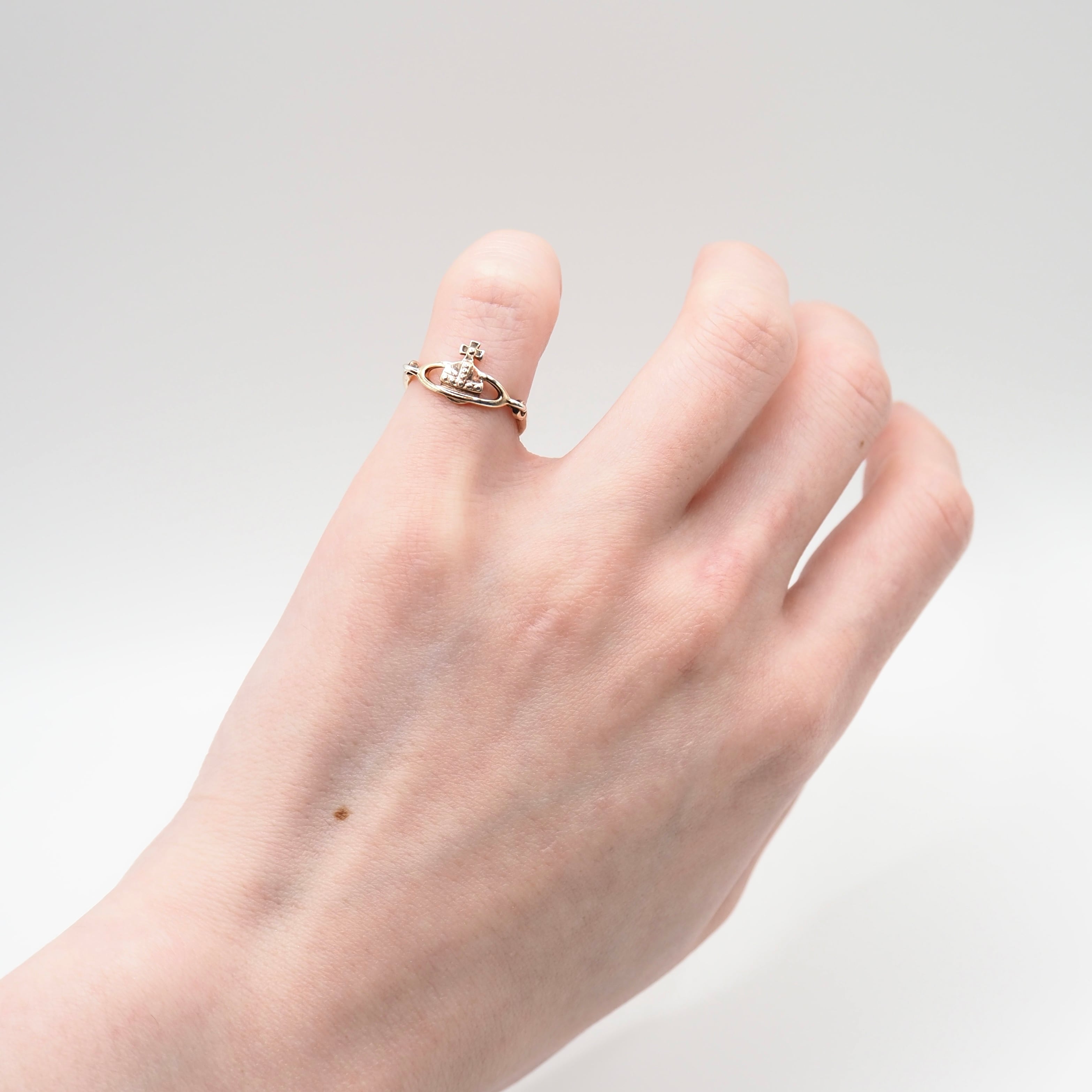 ヴィヴィアンを象徴するオーブモチーフのリング。モチーフの部分が動く仕様になっていて、光の乱射が綺麗です。
