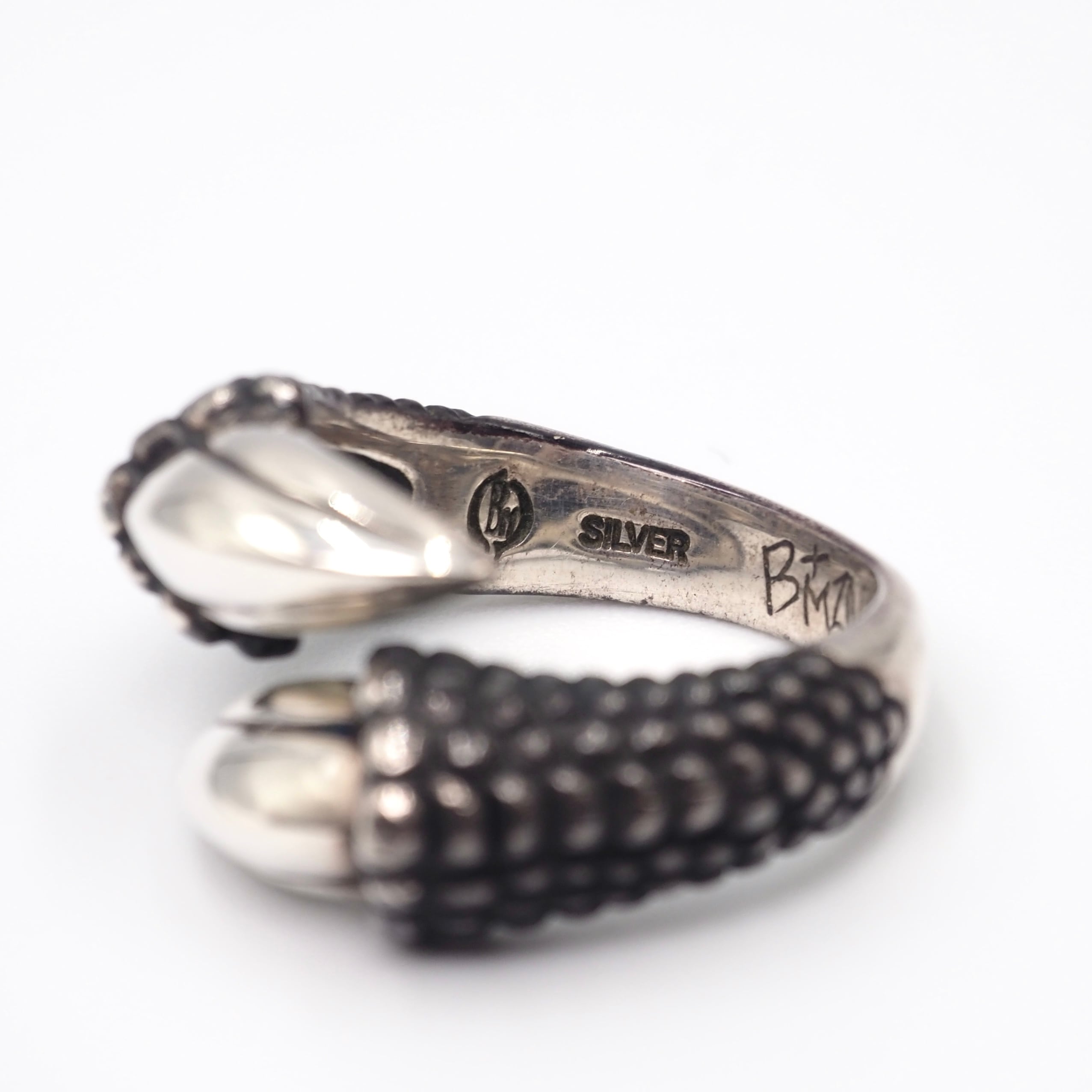 「自然を身にまとい、それぞれが意味を込めてお守りとする」ことをテーマとして掲げているブランド「ブラッディマリー」。龍の鱗と爪を忠実に再現したデザインが特徴的なリングです。