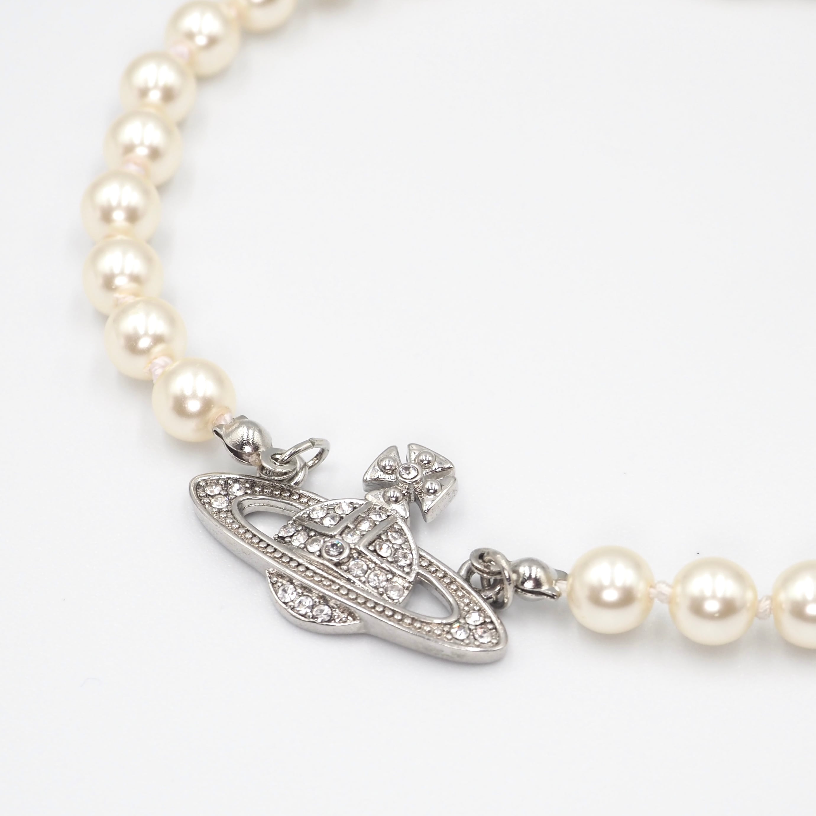 上品に煌くラインストーンをあしらったORBに、パールチェーンでアクセントを添えた「MINI BAS RELIEF チョーカー」。纏う人の魅力をさらに引き立たせるデザインです。