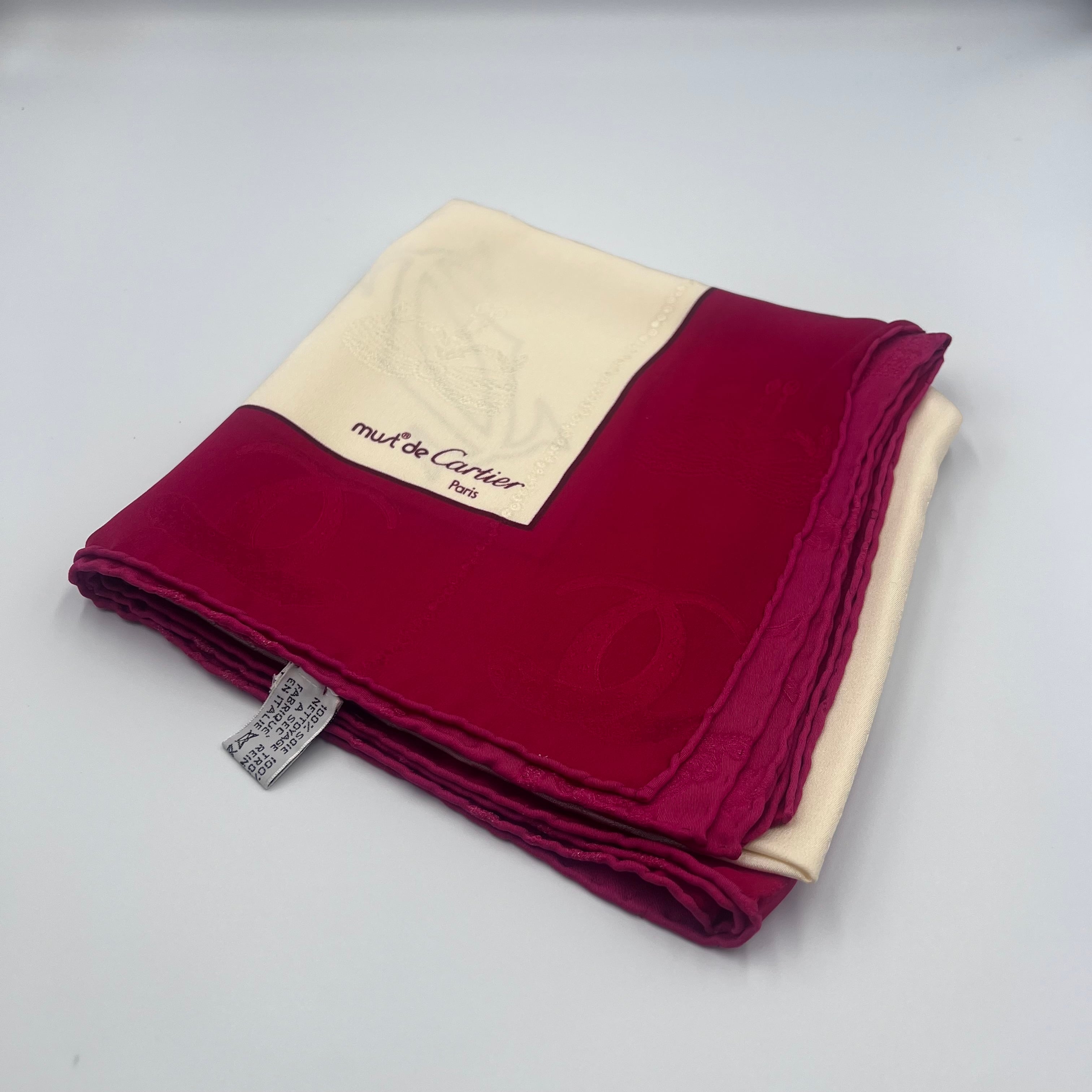 全面にドゥーブルCロゴのジャガード織り模様が施された、カルティエらしさを全面に感じられるアイテム。縁取られた真紅のカラーが差し色になるため、シンプルなファッションを好む方におすすめです。