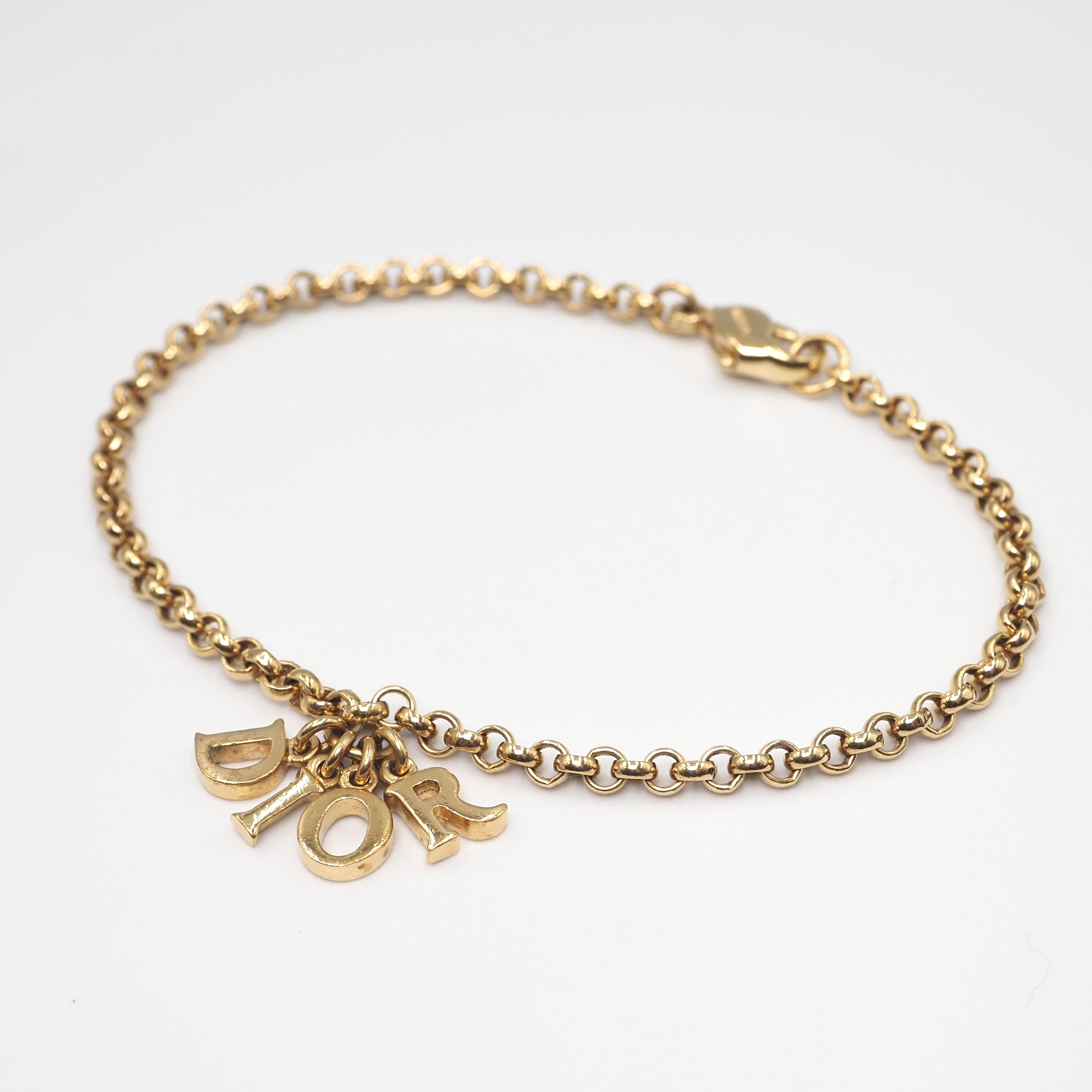 クリスチャン・ディオールのヴィンテージブレスレット。細めのチェーンで小ぶりデザインですが、ブランドのチャームがさりげなく揺れているため微かな個性も見せてくれます。