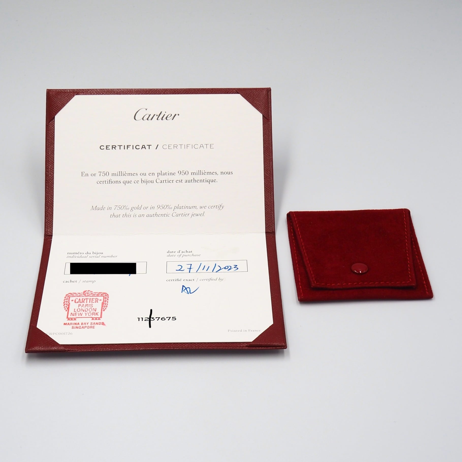 保存袋、箱、ギャランティ