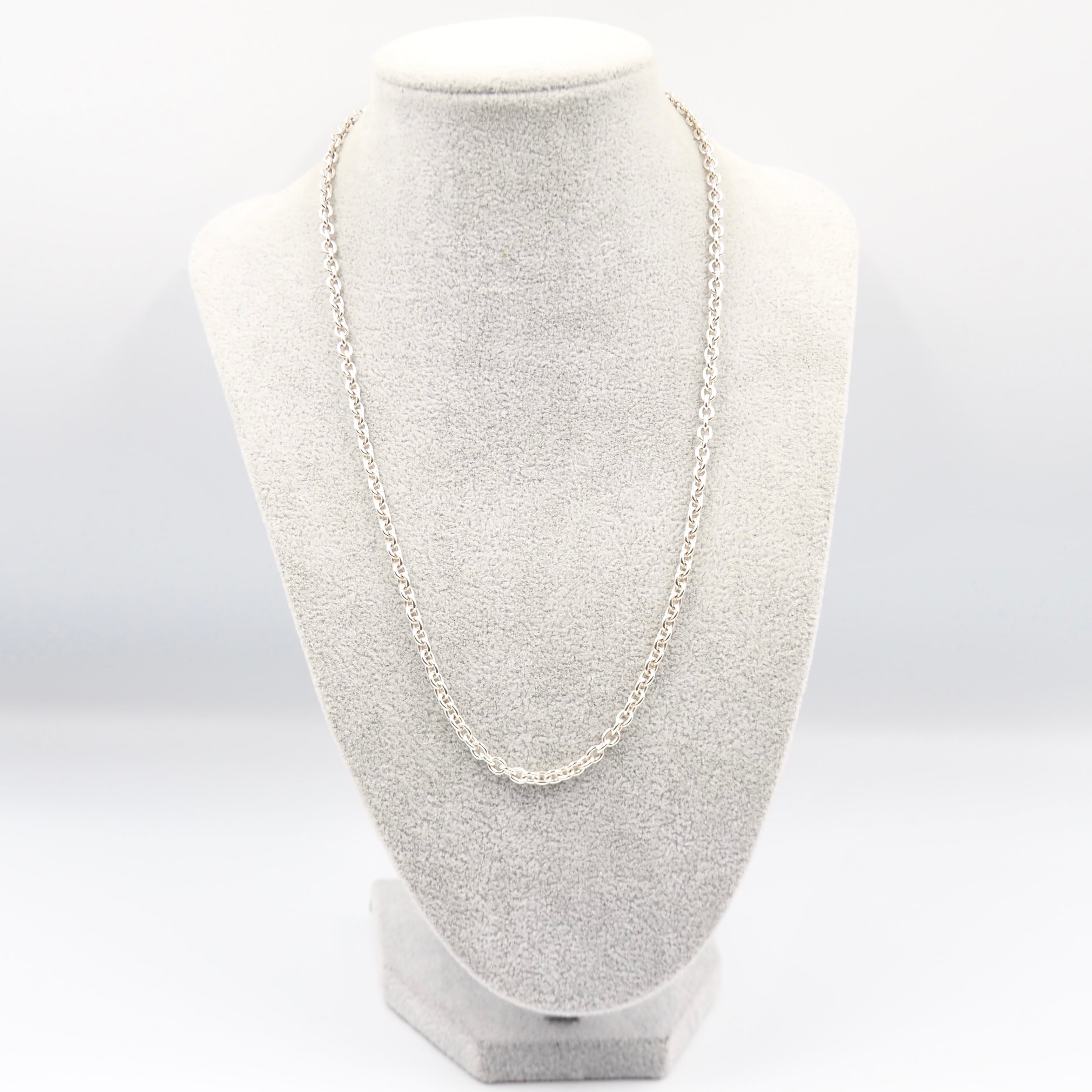 細過ぎず太過ぎない、長めのチェーンネックレス。一つは持っておきたいアイテムです。シーンを選ばず着用できること、他のネックレスと重ね付けすることで雰囲気を変えられることが魅力です。