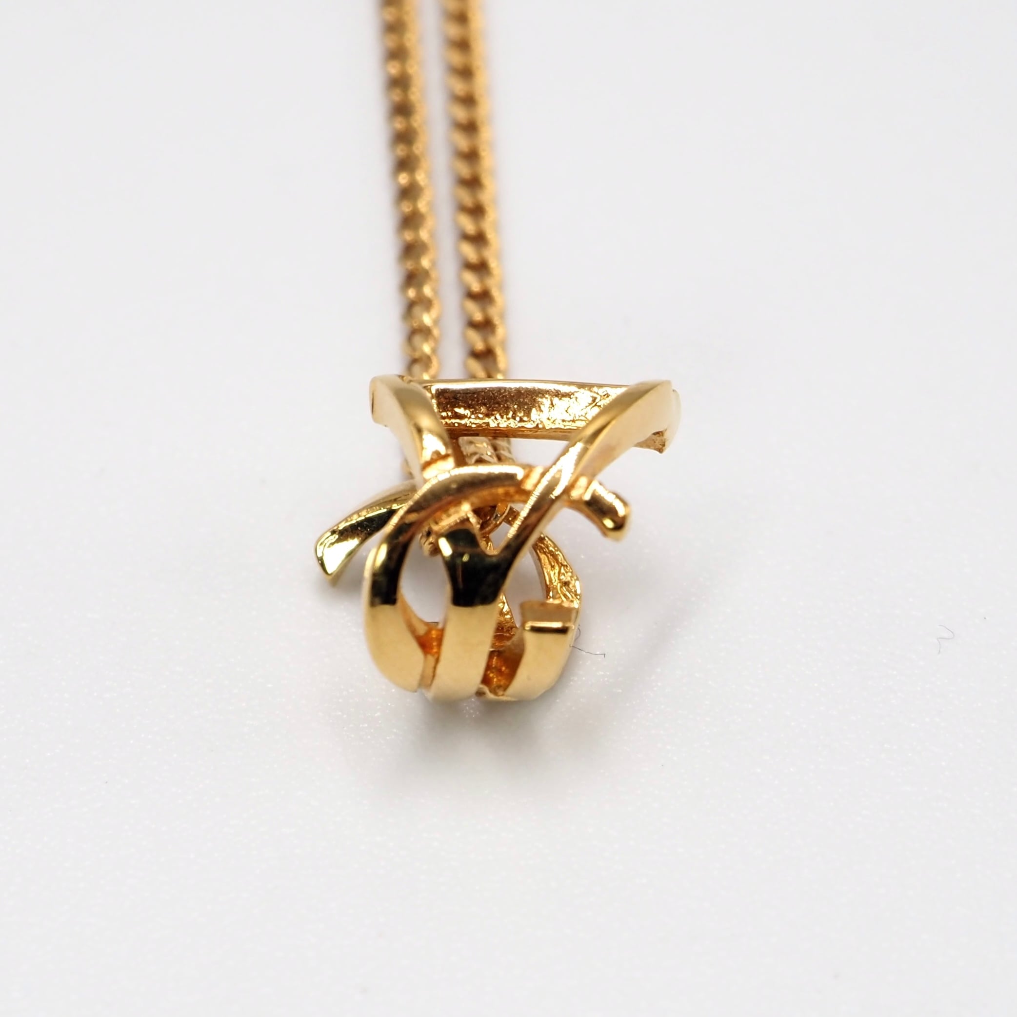 上品なゴールドのメタルチェーンに、ブランドのシンボルであるツイストした“Cassandra”リングのトップが揺れるネックレスです。細身のチェーンが抑えめに輝き、シンプルながら洗練された印象を与えてくれます。