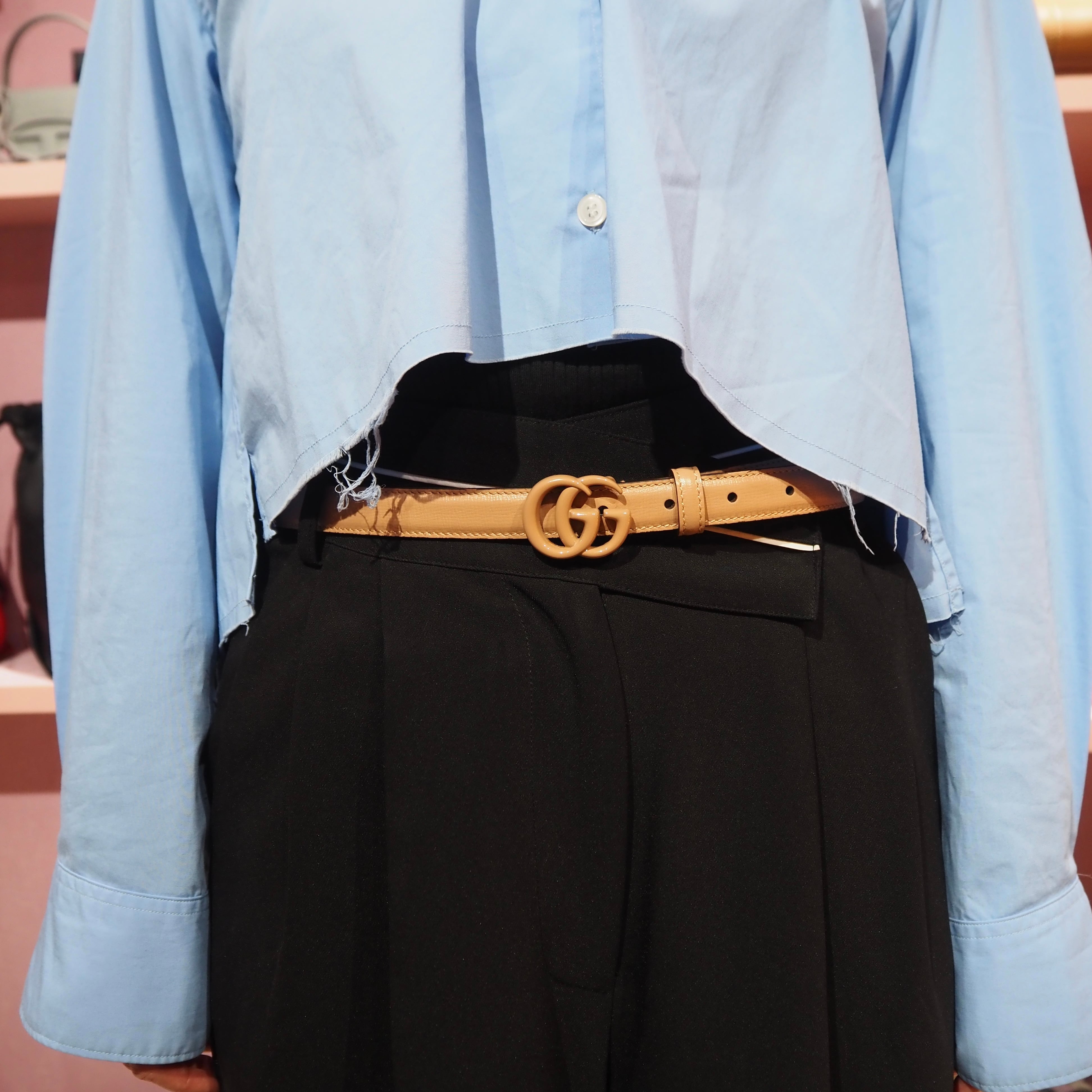 GUCCI GGマーモント スリムベルト レザー ベージュ グッチ