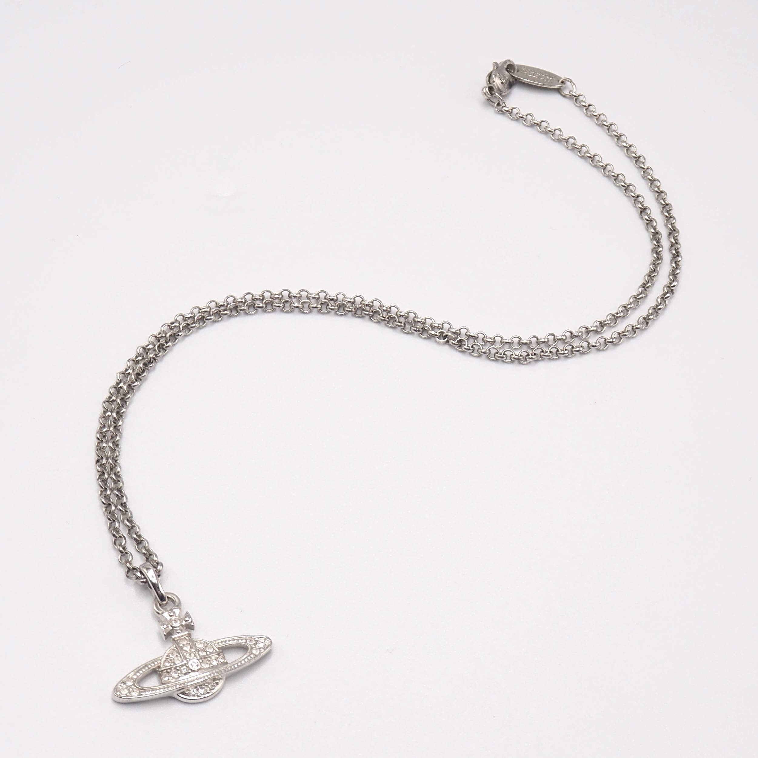 アイコニックなオーブデザインにラインストーンがあしらわれたデザインが特徴のネックレスです。シンプルで上品なカラーで、服装を選ばず普段からお使いいただけます。