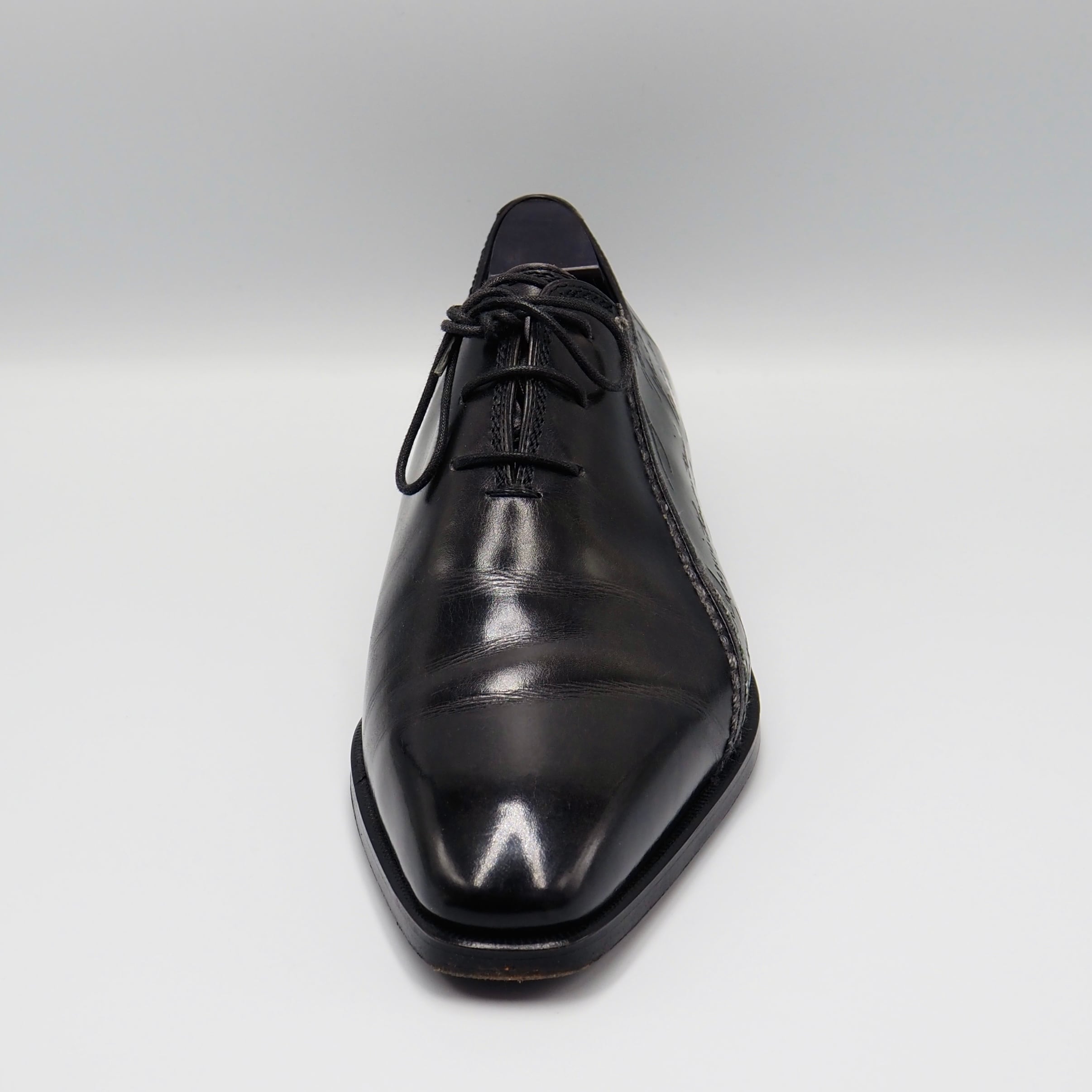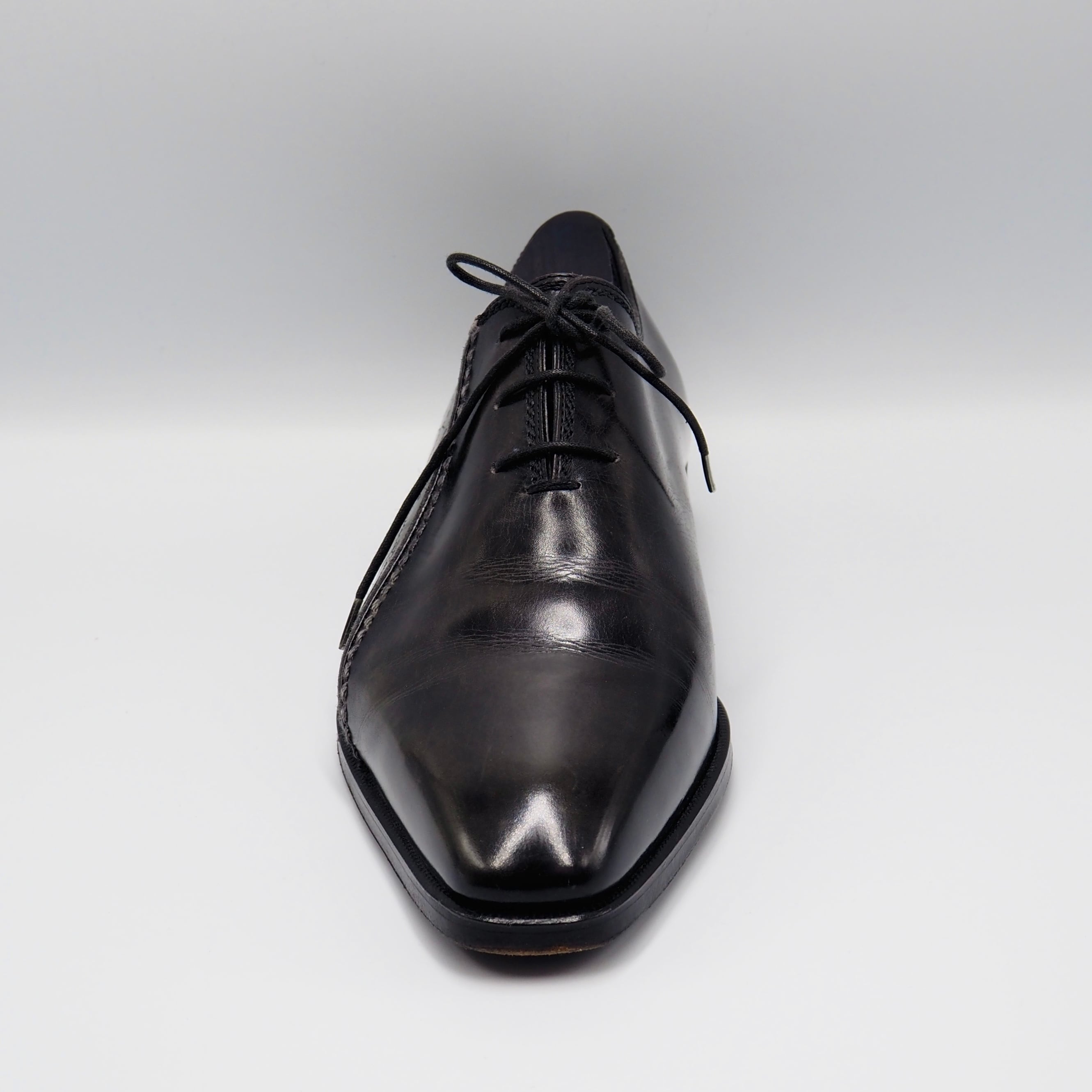 ベルルッティの独自技法が込められたパティーヌ(革を染料で何層にも手染めしたことで生まれる色ムラや艶)に、さりげなく施されたカリグラフィが魅力のシューズ。上質なレザーと端正なフォルムがビジネススタイルからドレススタイルまで幅広く活躍します。