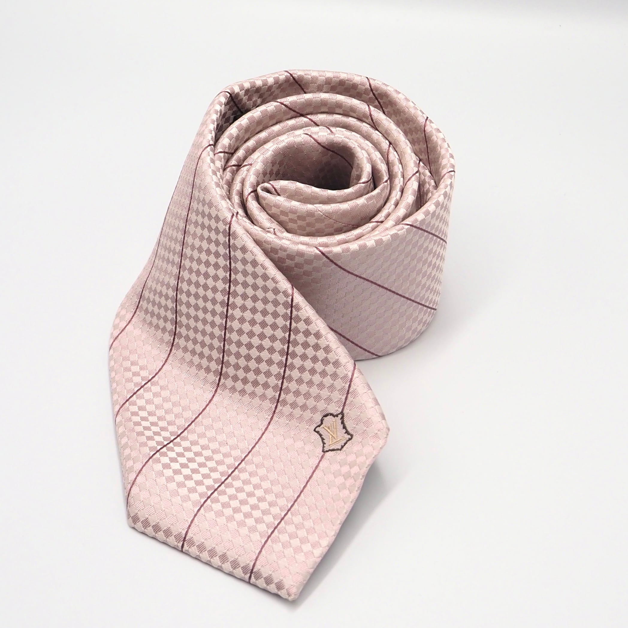 マイクロダミエの柄が全体に施されており、大剣部分に小さくロゴがあしらわれたネクタイです。状態が良く箱付きのため、プレゼントにもおすすめです。