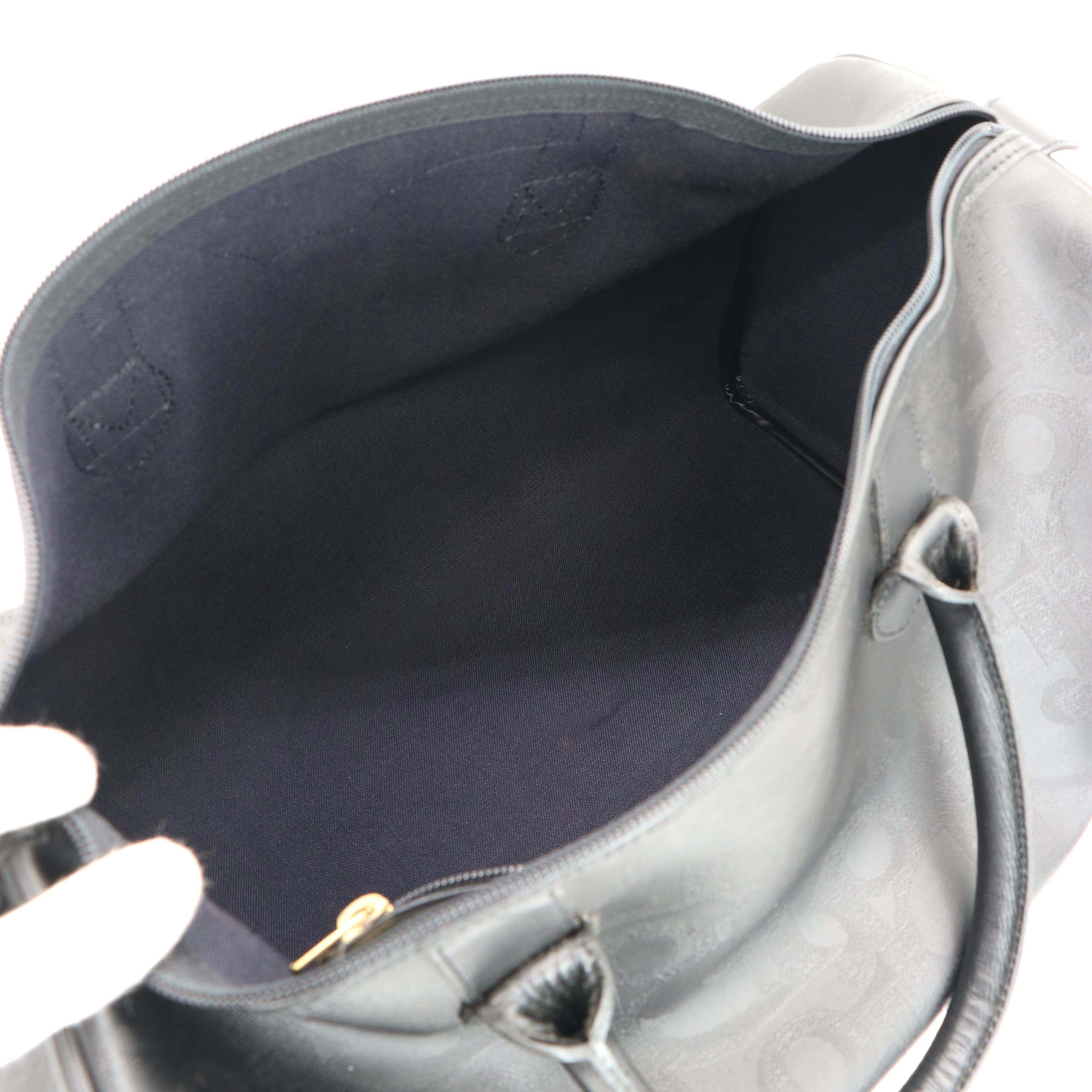 DIOR トロッターボストン ネイビー コーティングキャンバス レザー ディオール