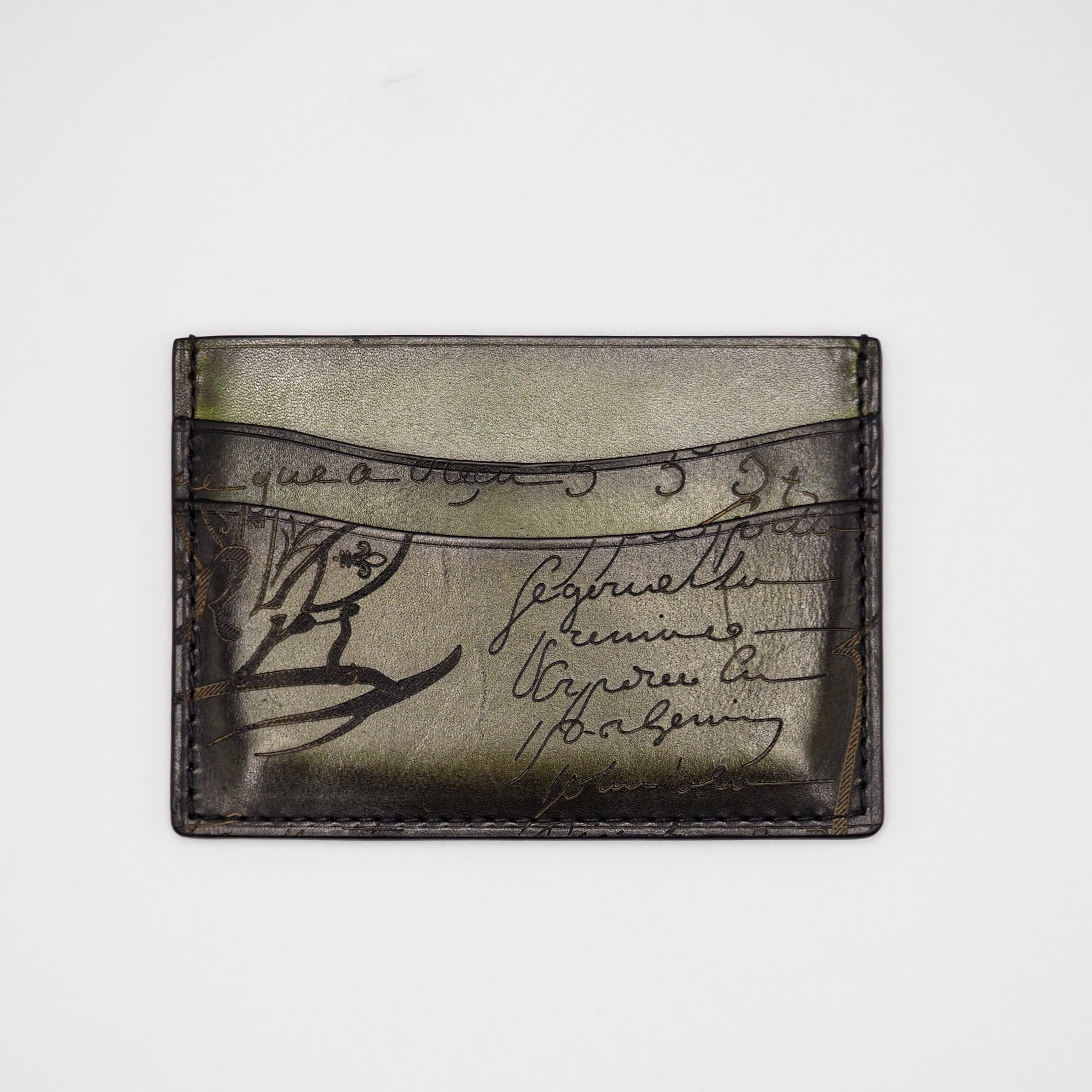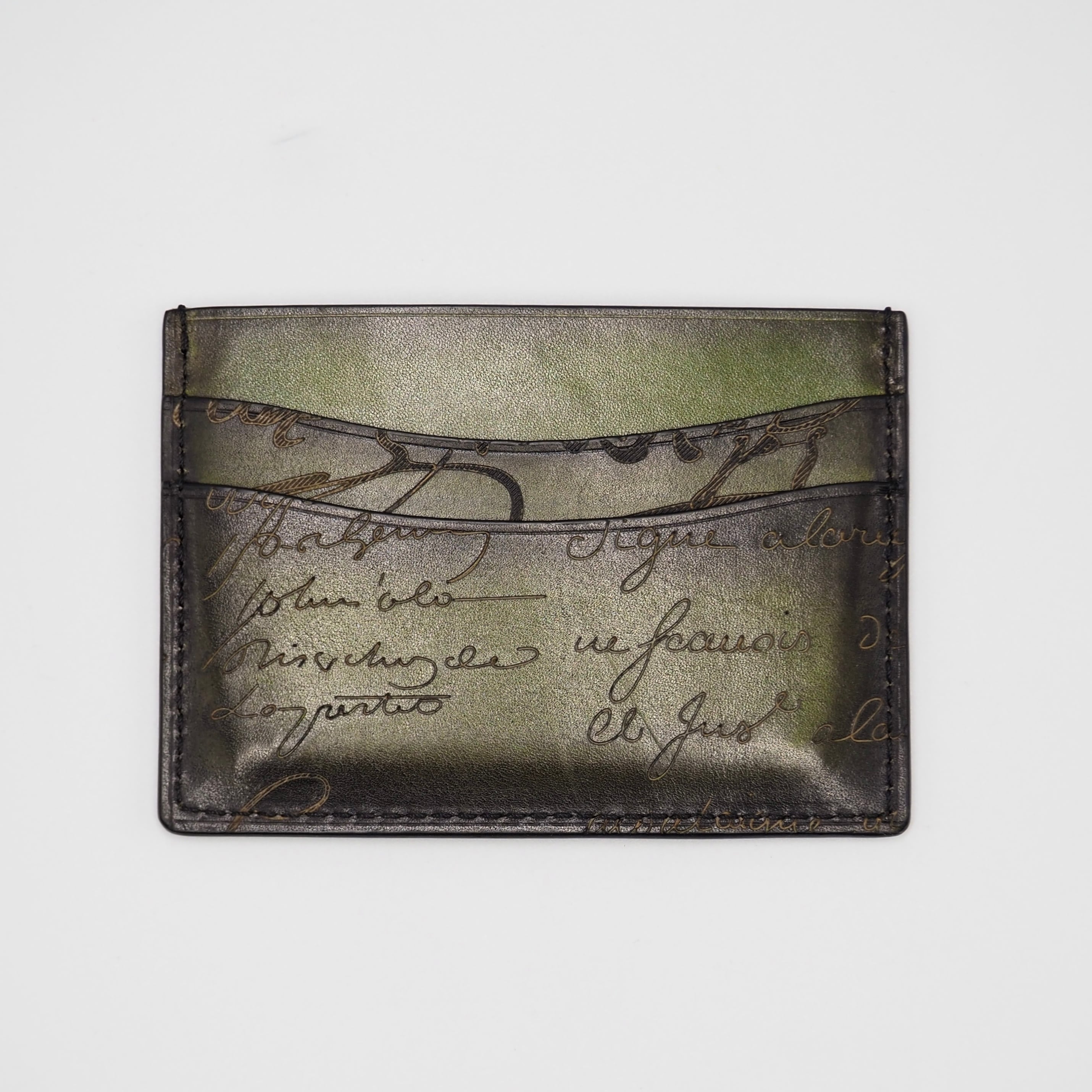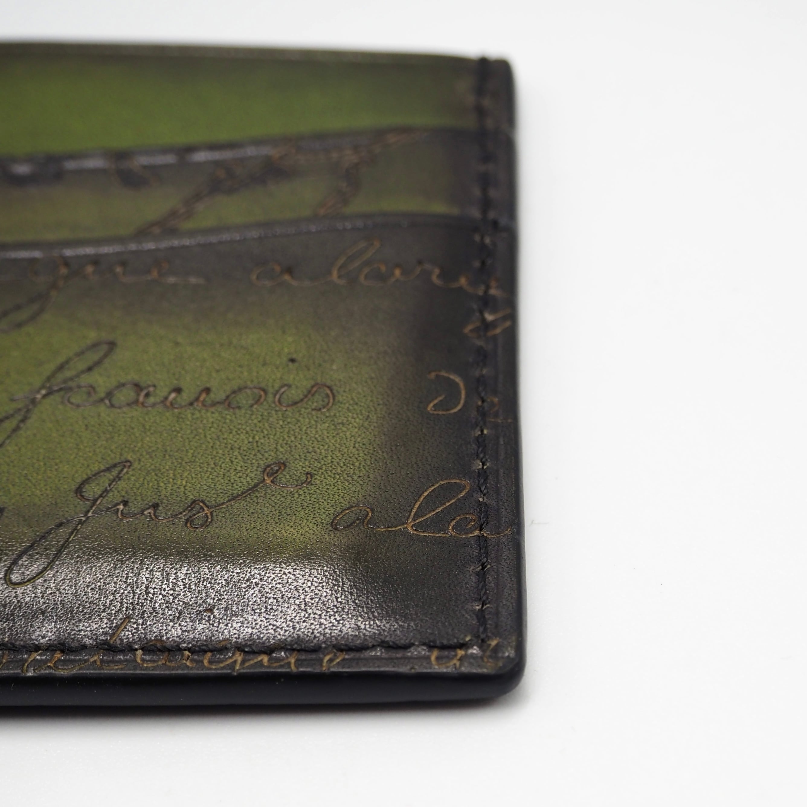 2/22掲載 BERLUTI バンブー カリグラフィ カードケース スクリットレザー グリーン ベルルッティ
