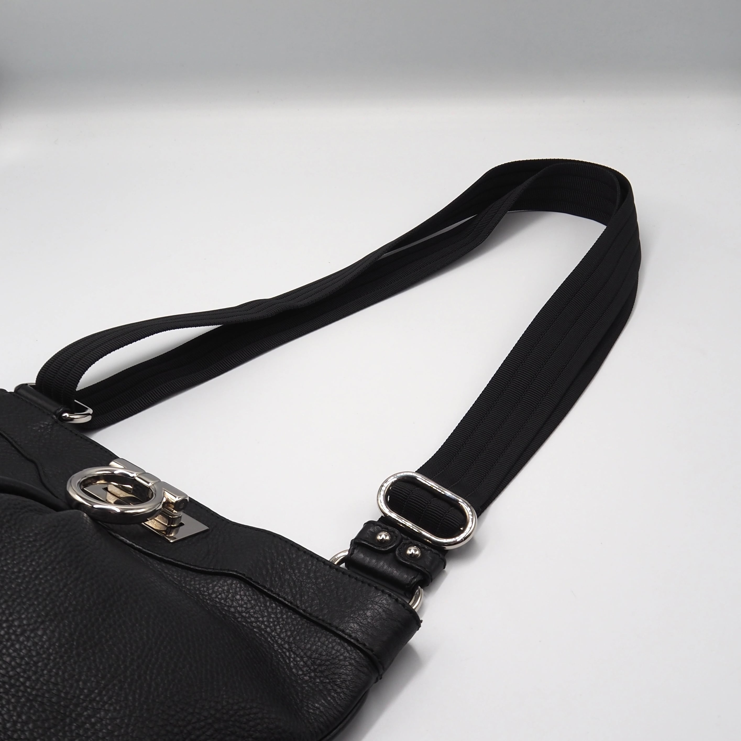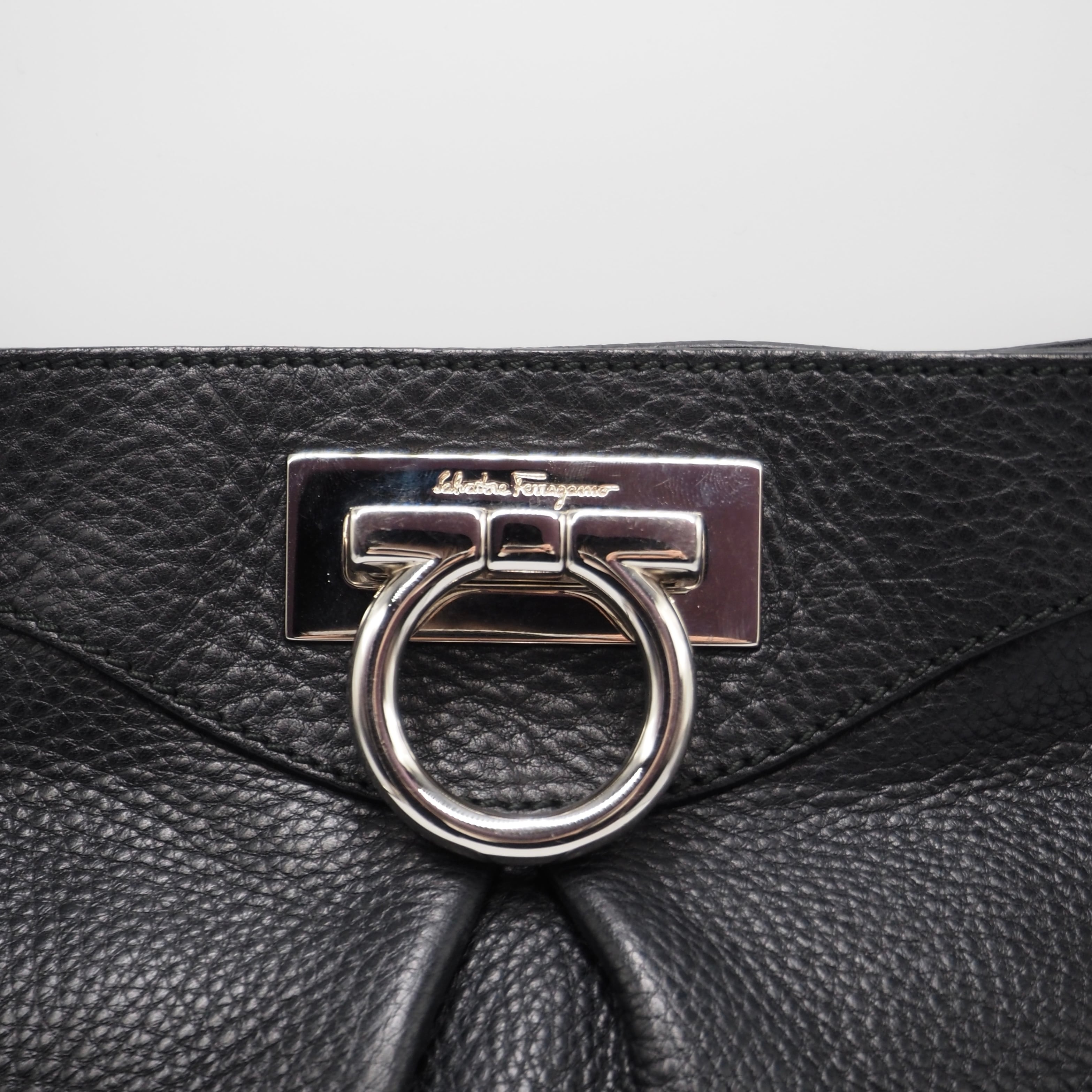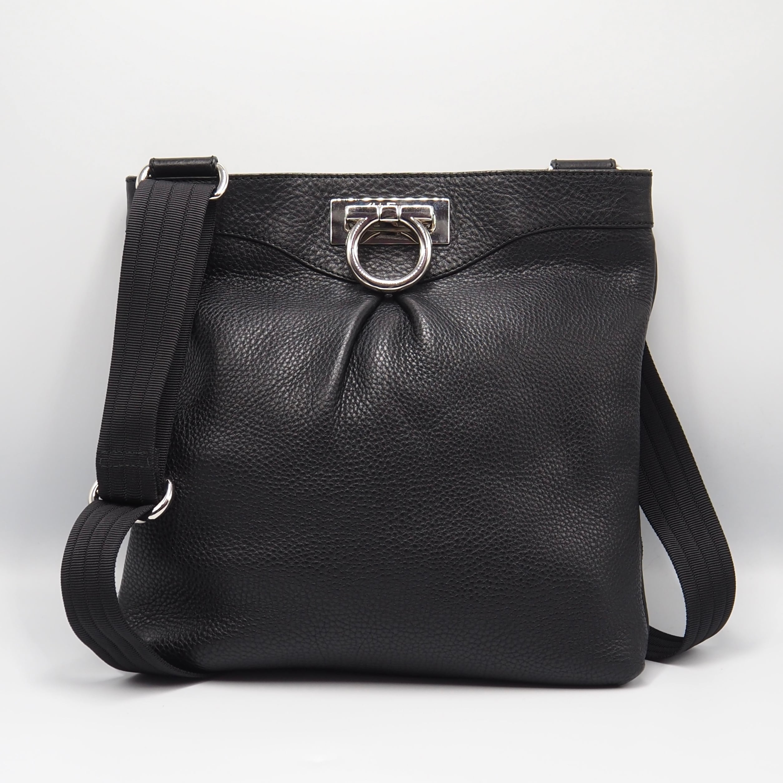 2/22掲載 Ferragamo ガンチーニ ショルダーバッグ レザー ブラック フェラガモ 付属品付き