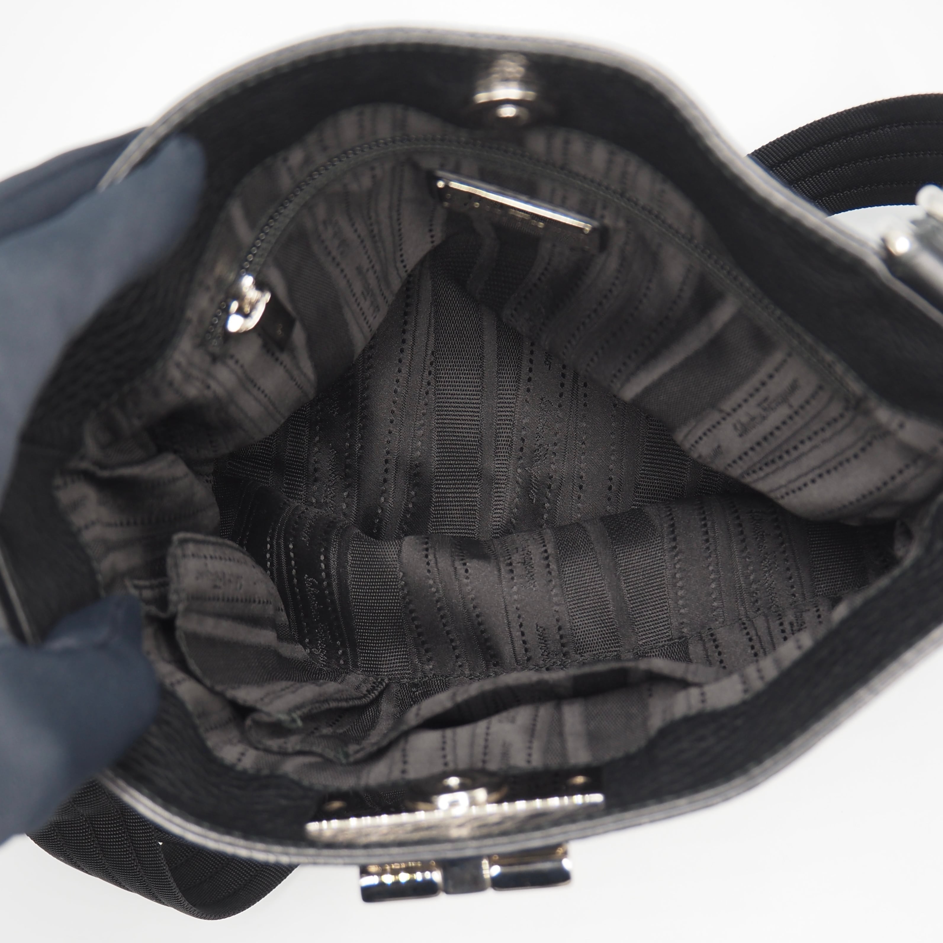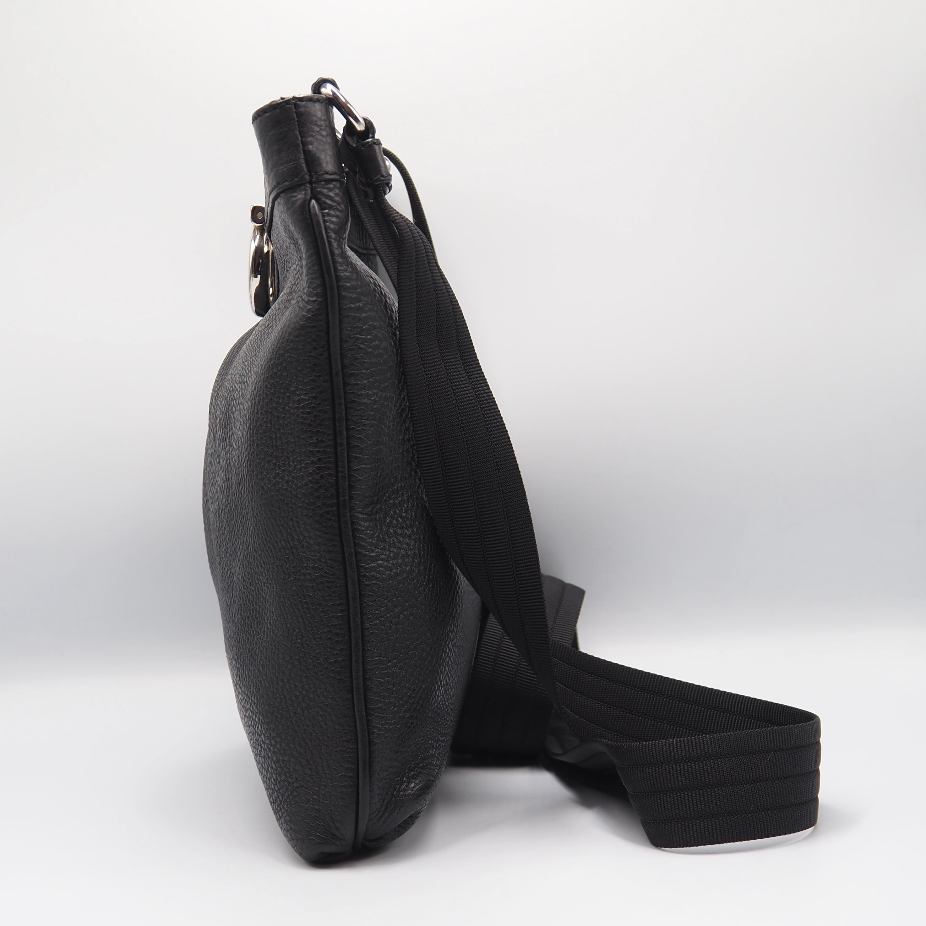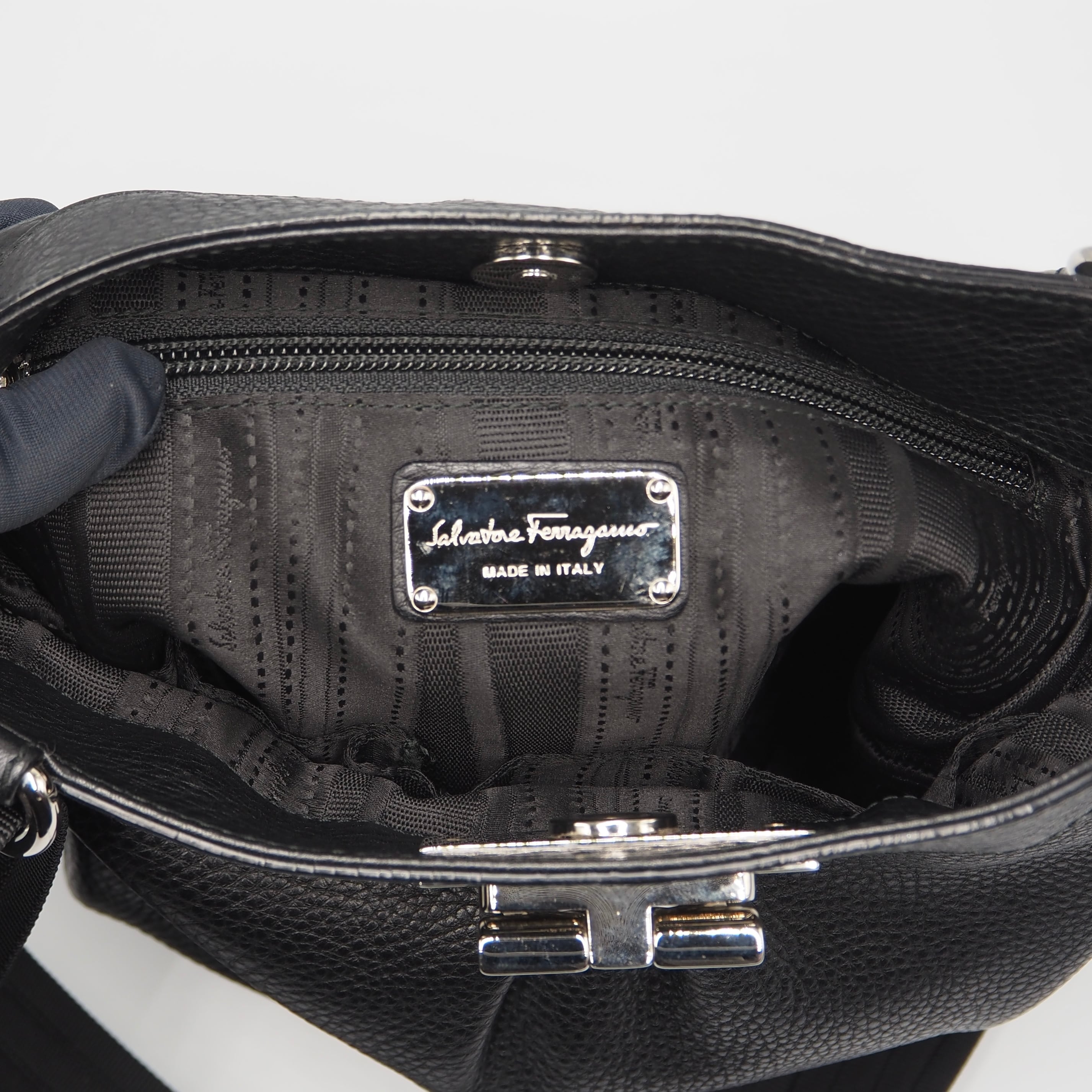 2/22掲載 Ferragamo ガンチーニ ショルダーバッグ レザー ブラック フェラガモ 付属品付き