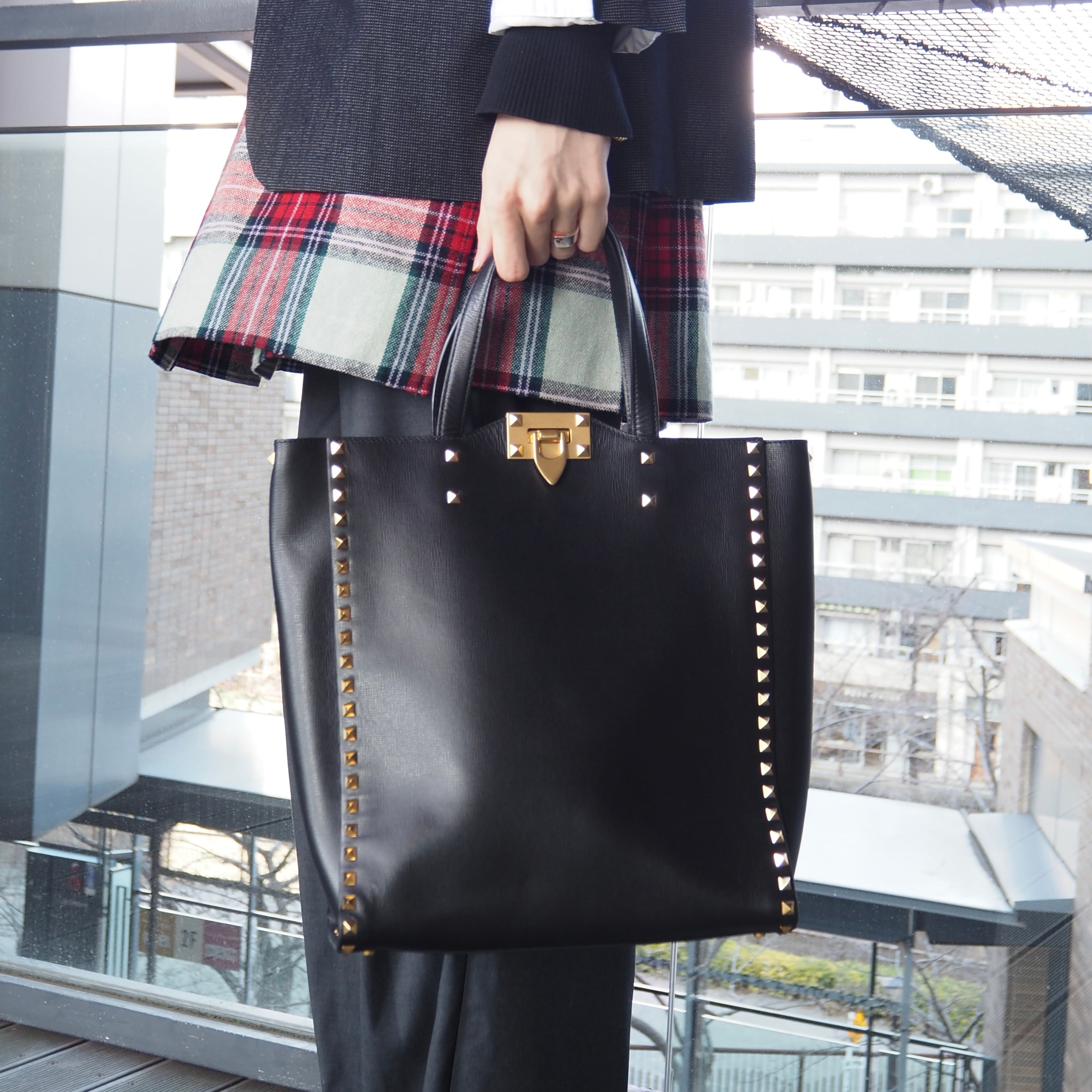 2/23掲載 VALENTINO ガラヴァーニ ロックスタッズ ハンドバッグ レザー ブラック ヴァレンティノ