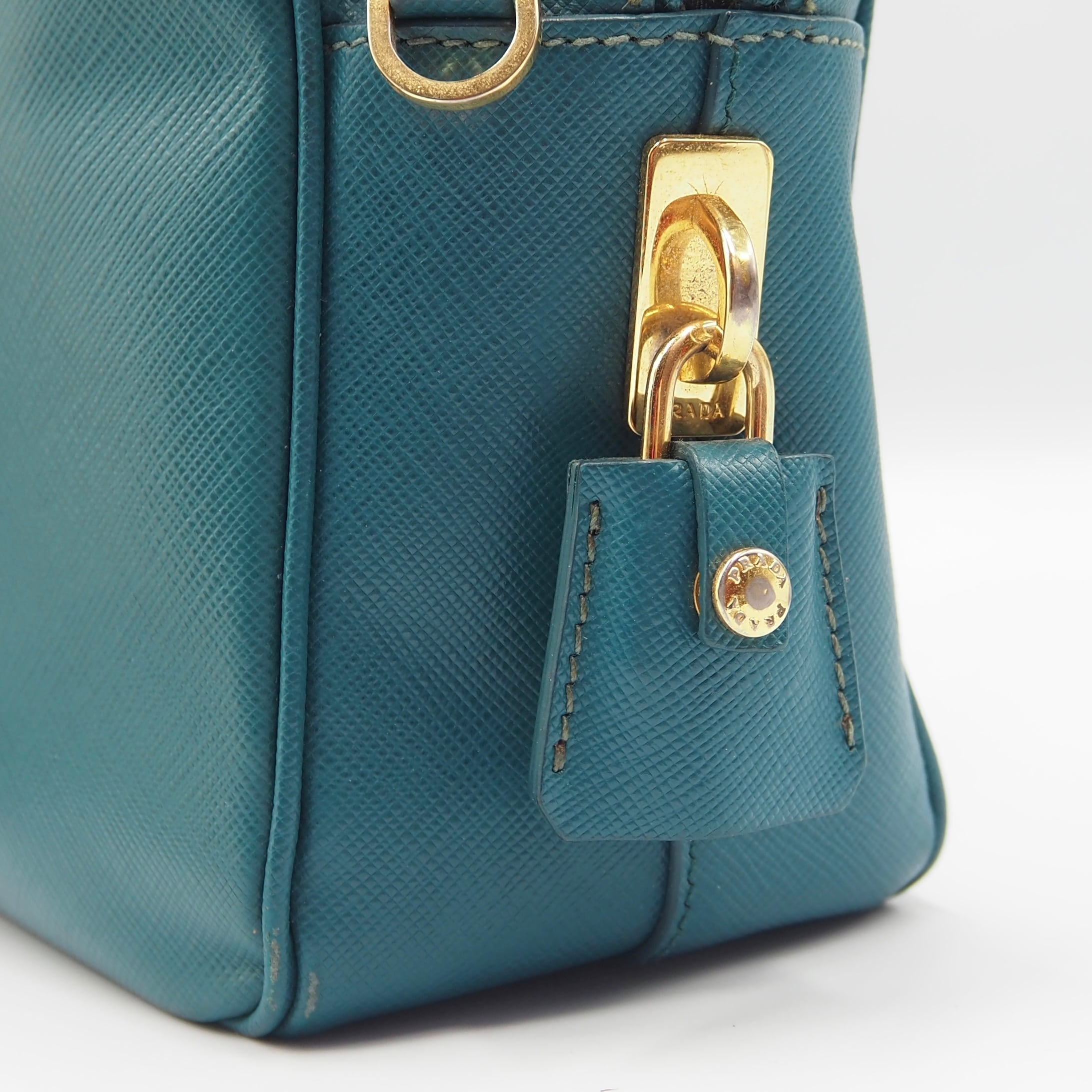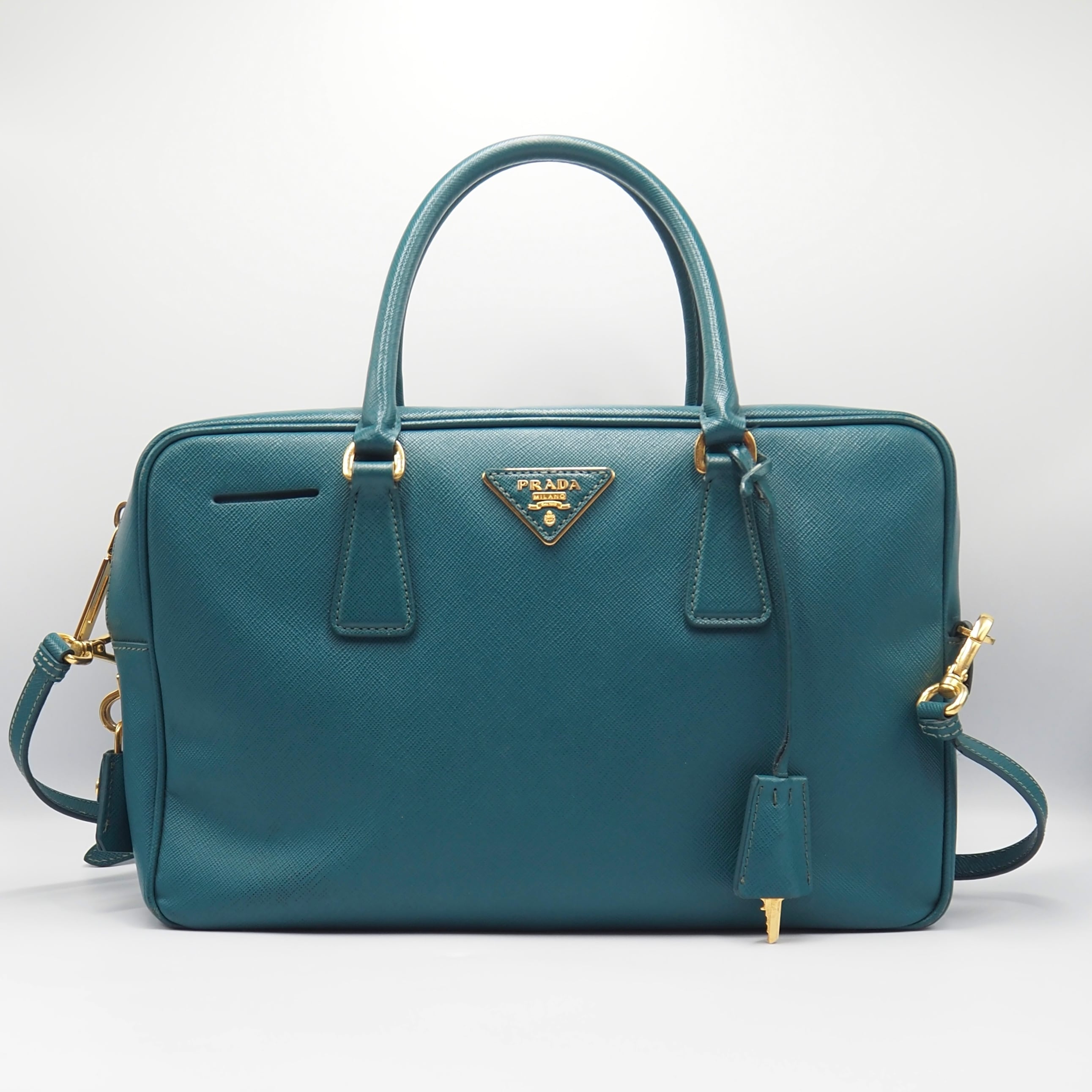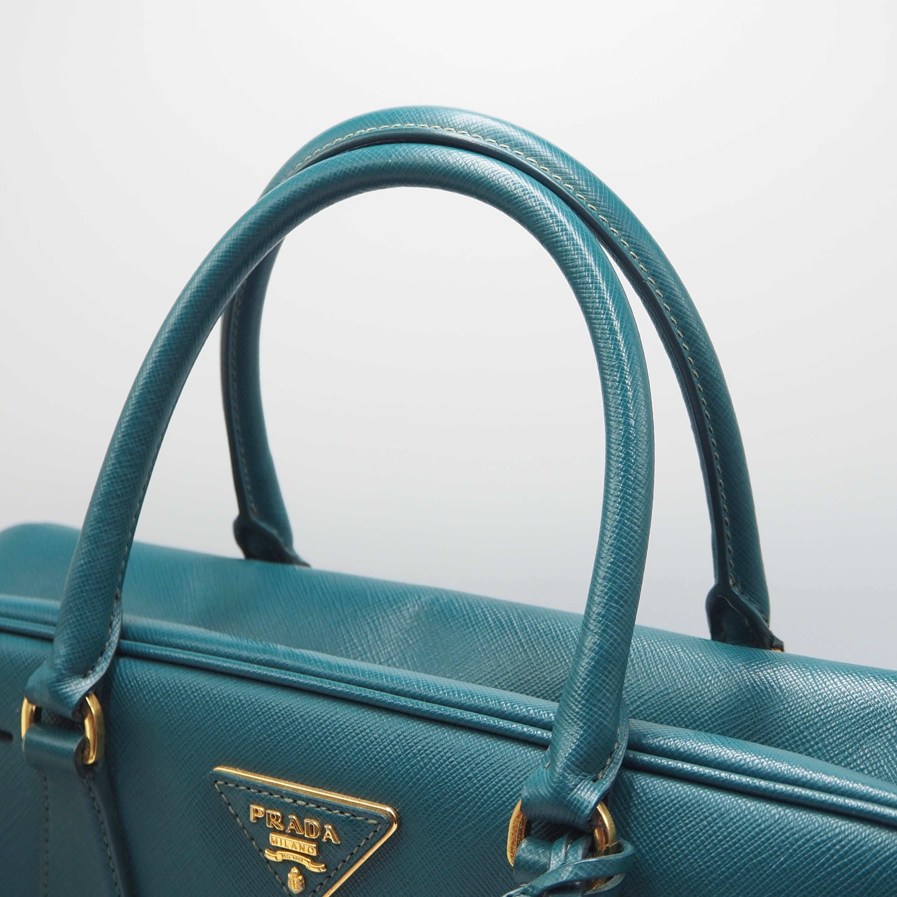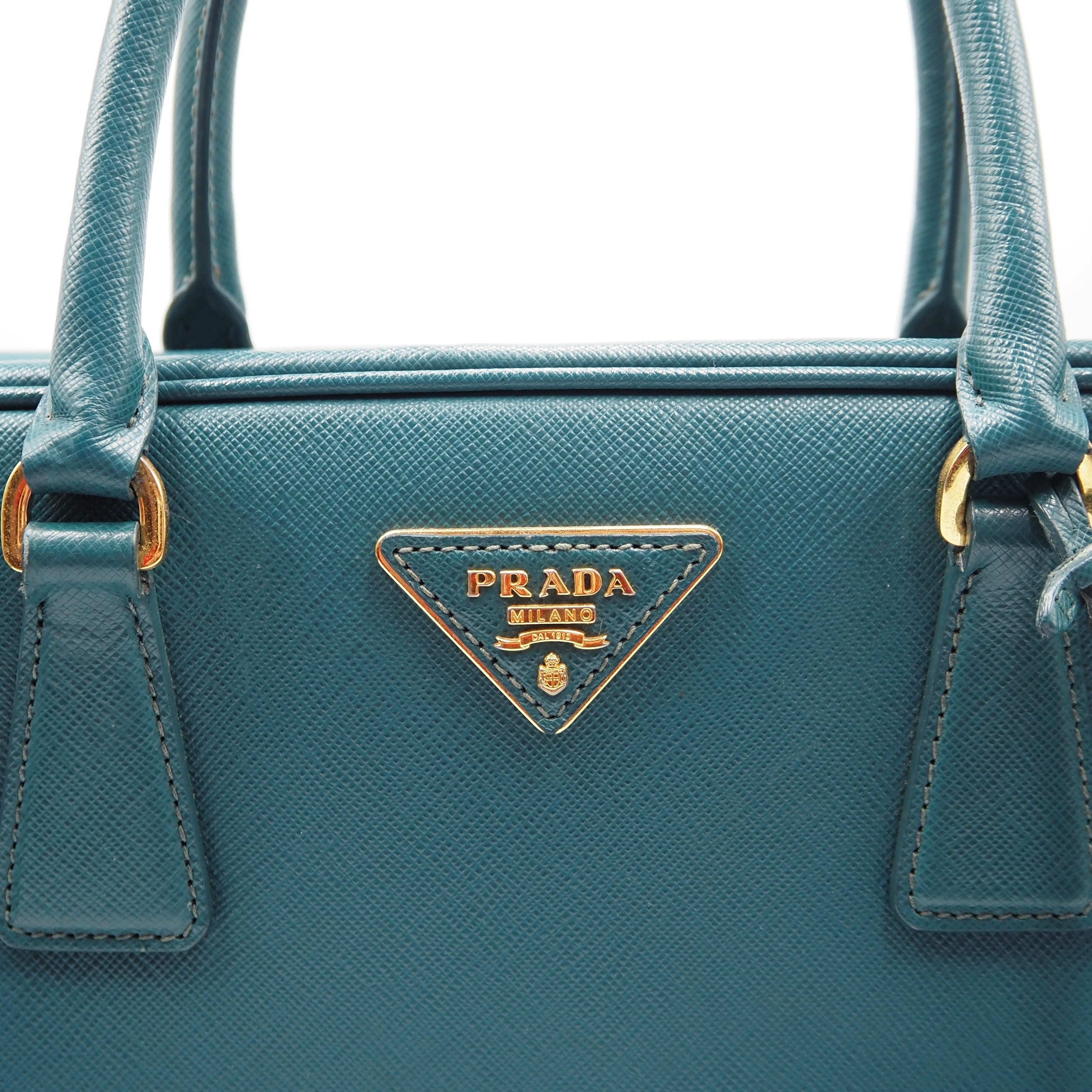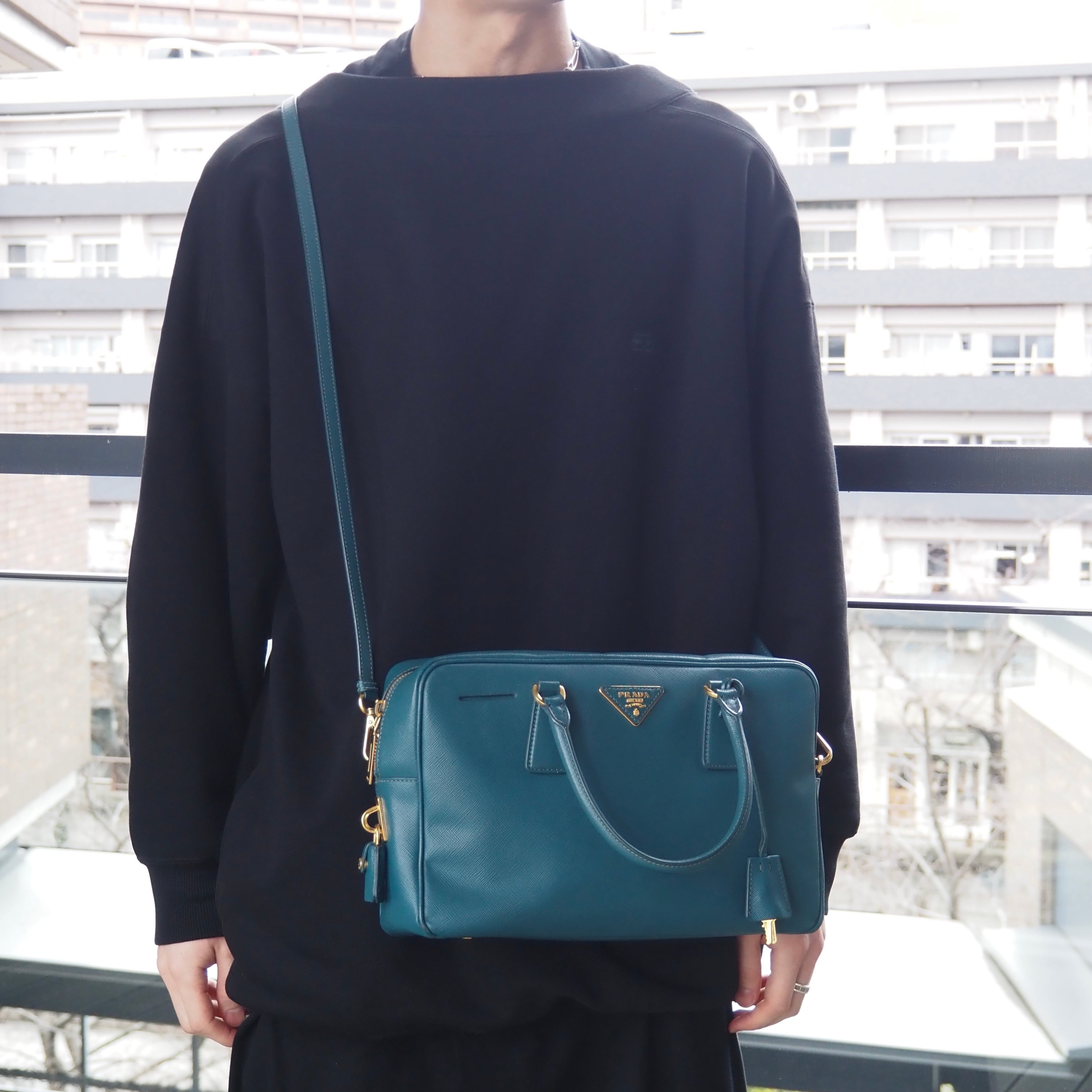 2/27掲載 PRADA サフィアーノ トライアングルロゴ ハンドバッグ ショルダーバッグ エメラルドグリーン レザー プラダ 付属品付き