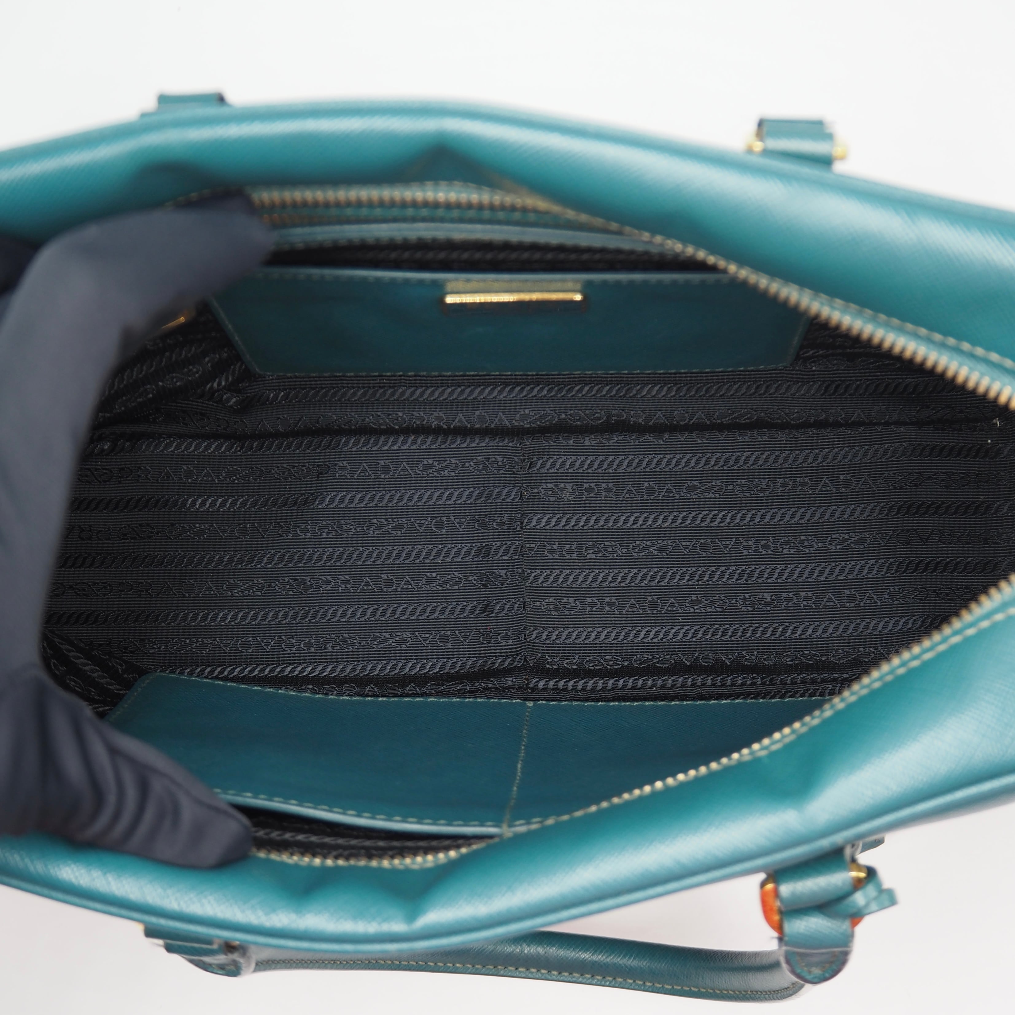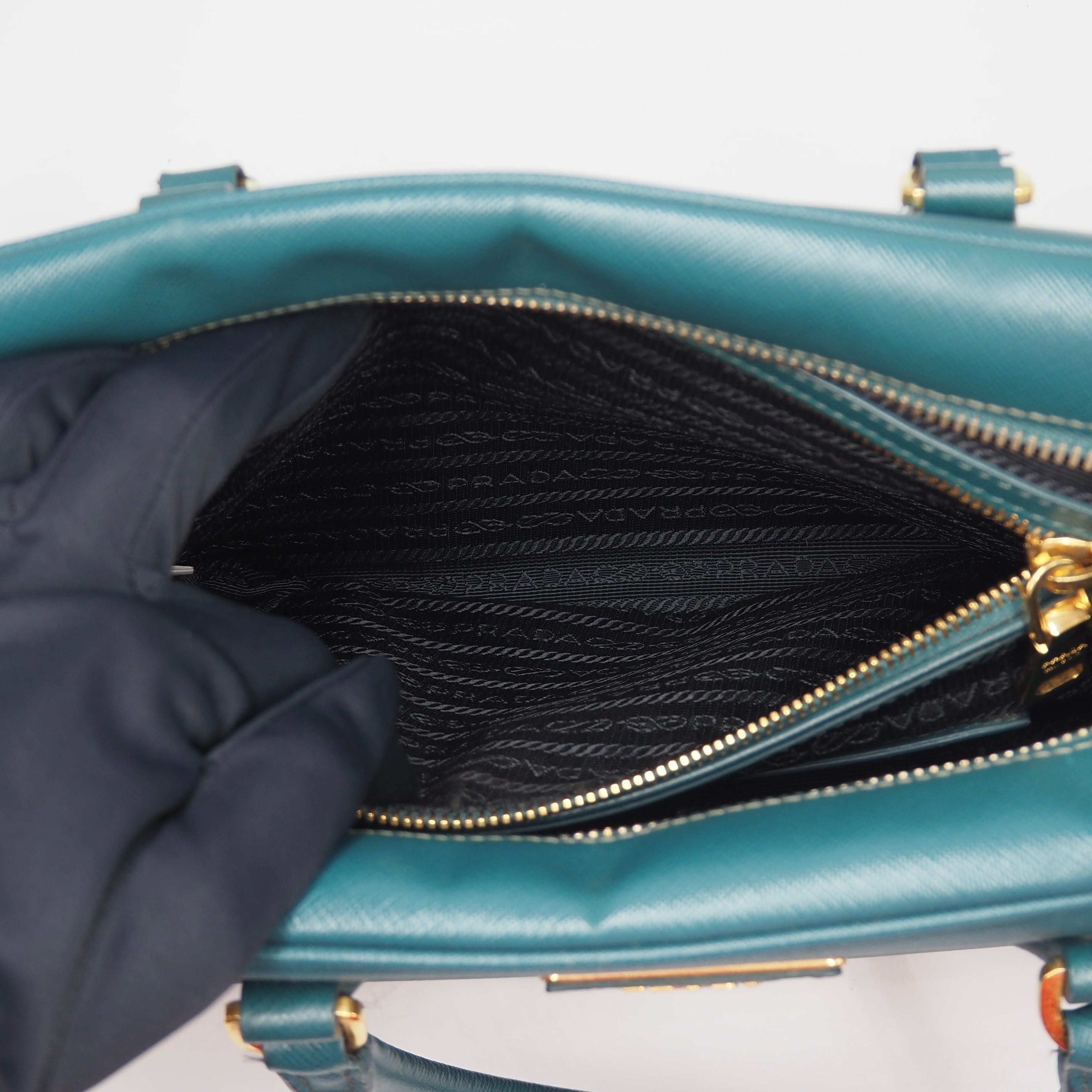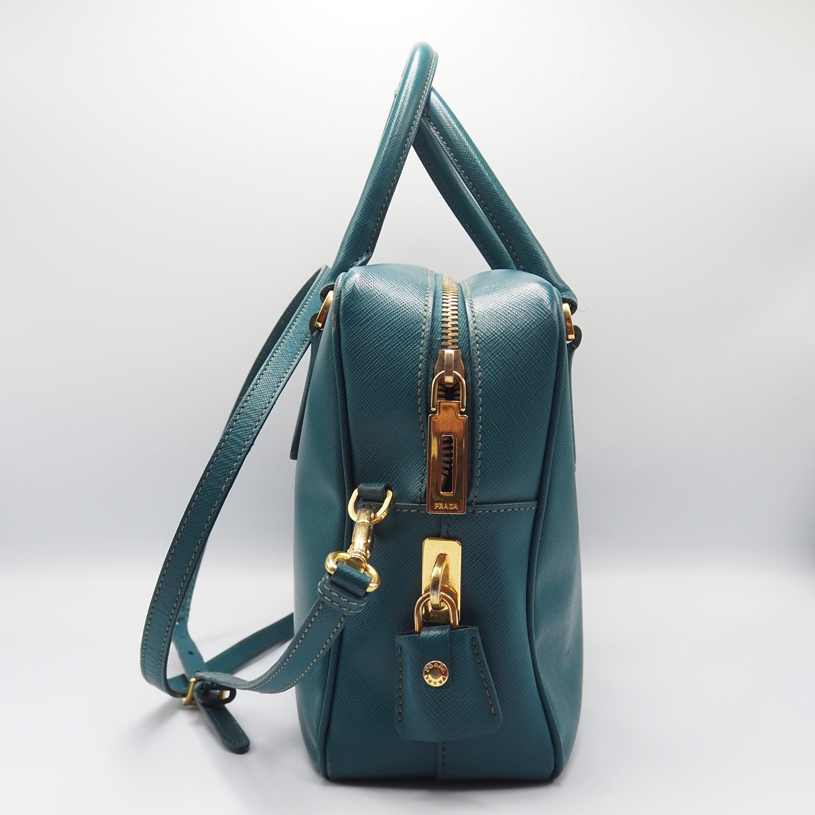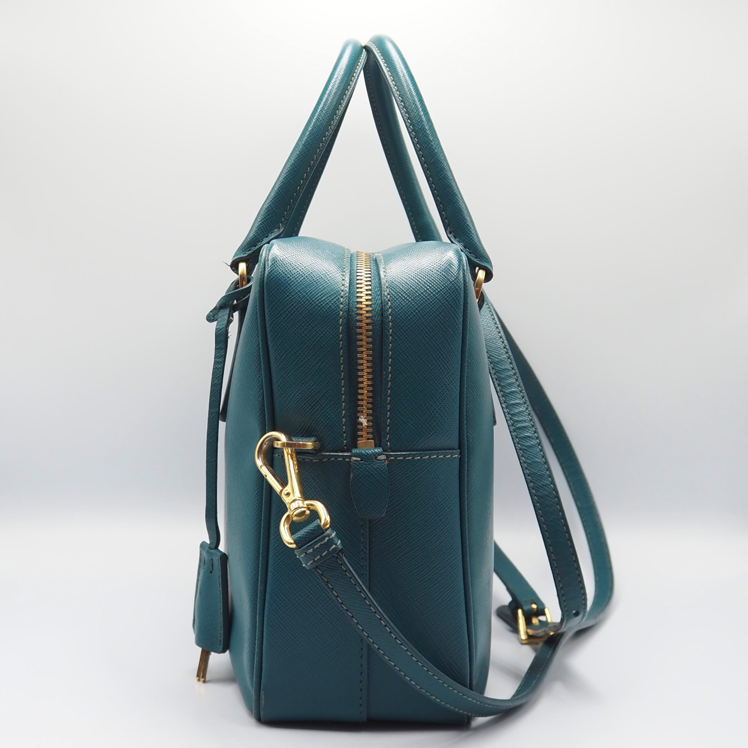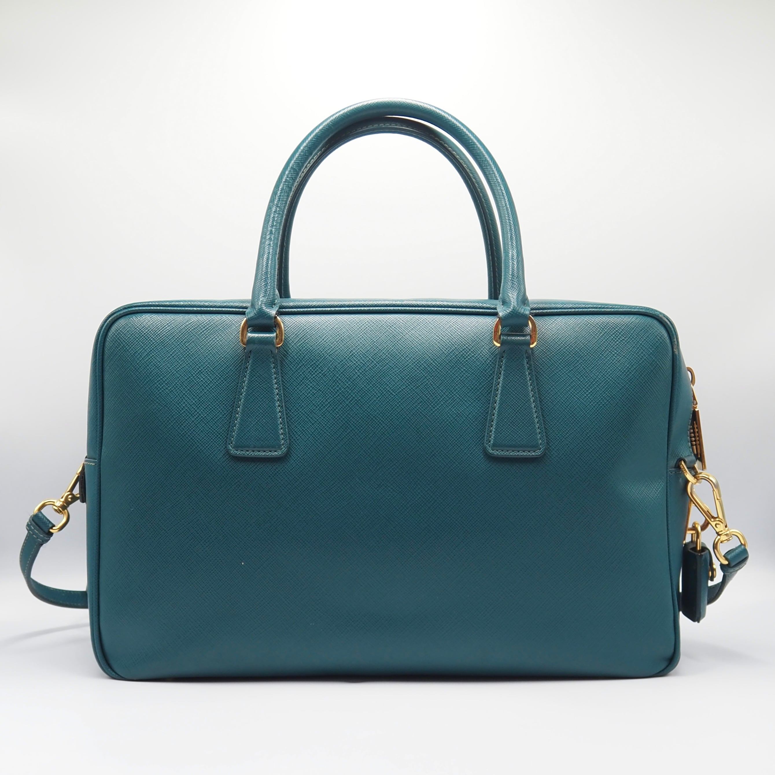 2/27掲載 PRADA サフィアーノ トライアングルロゴ ハンドバッグ ショルダーバッグ エメラルドグリーン レザー プラダ 付属品付き