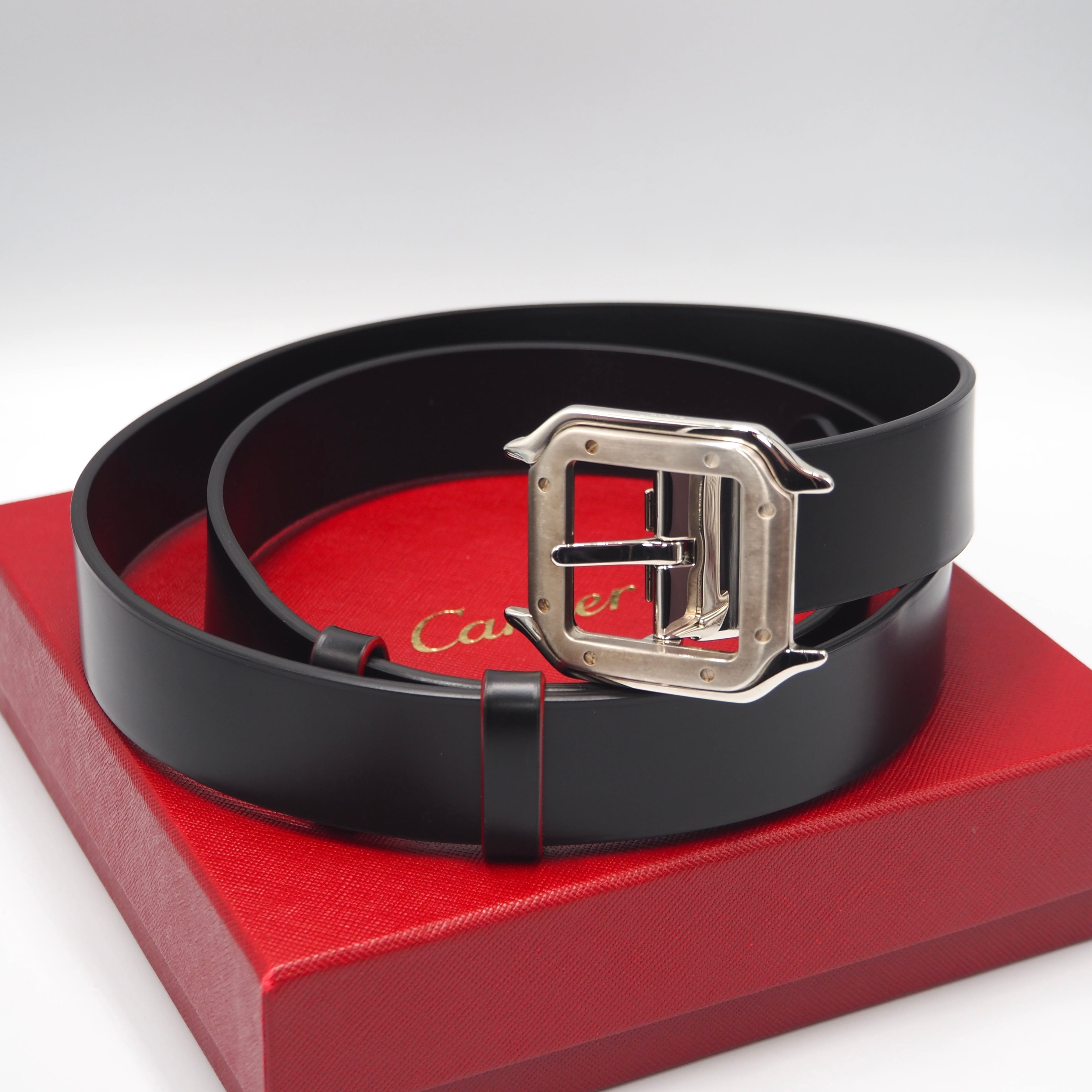 3/3掲載【現行品】Cartier サントス ドゥ カルティエ ベルト ブラック カルティエ 付属品付き