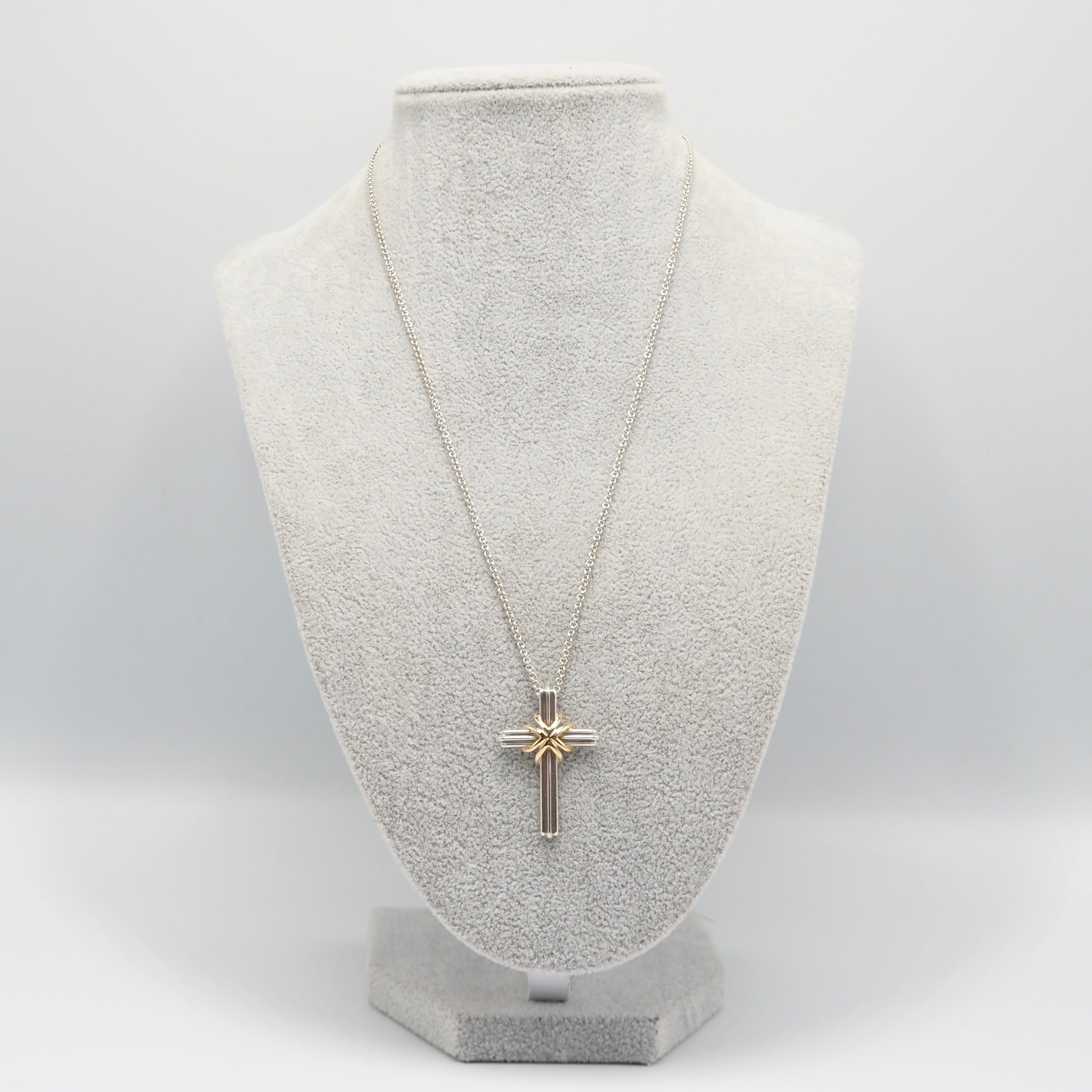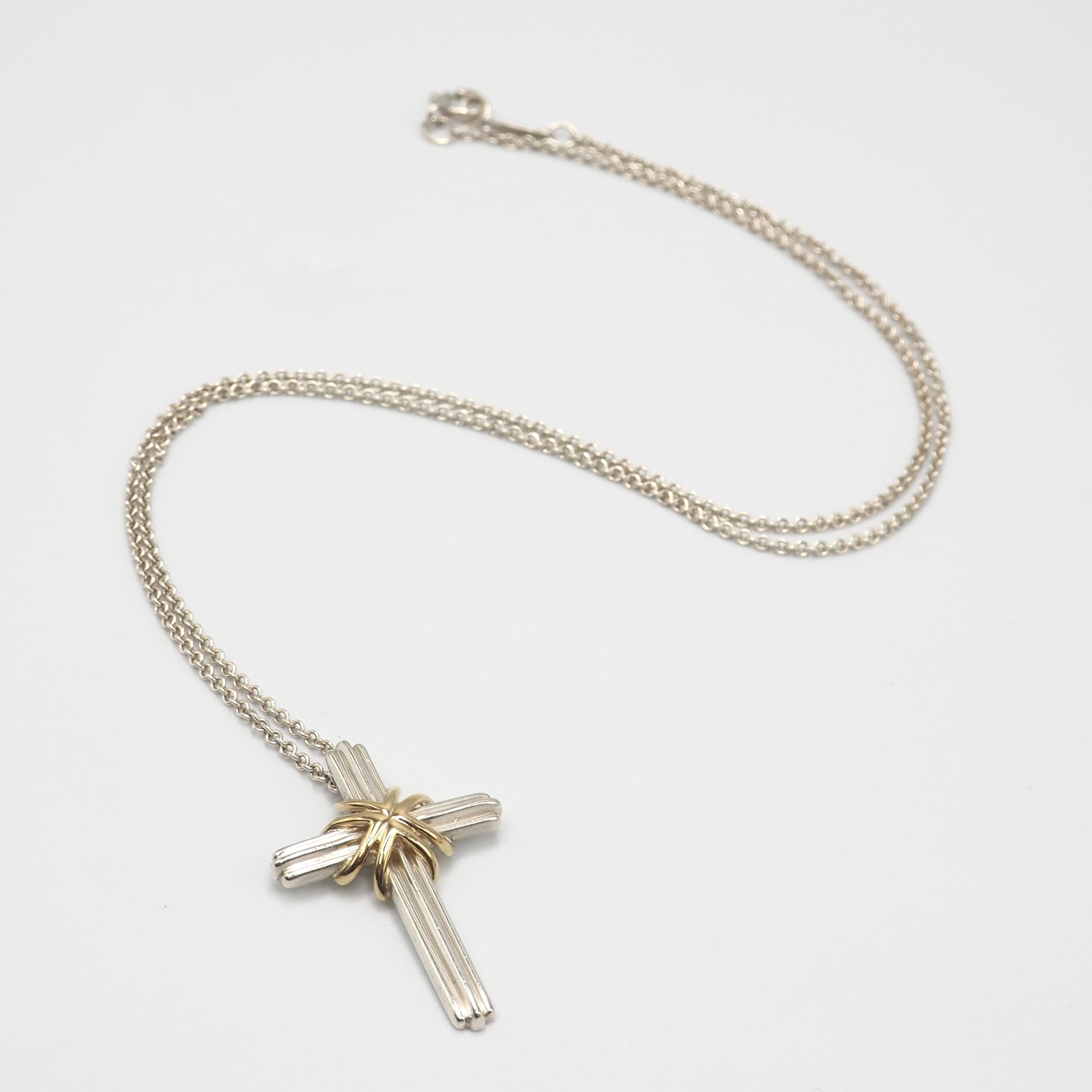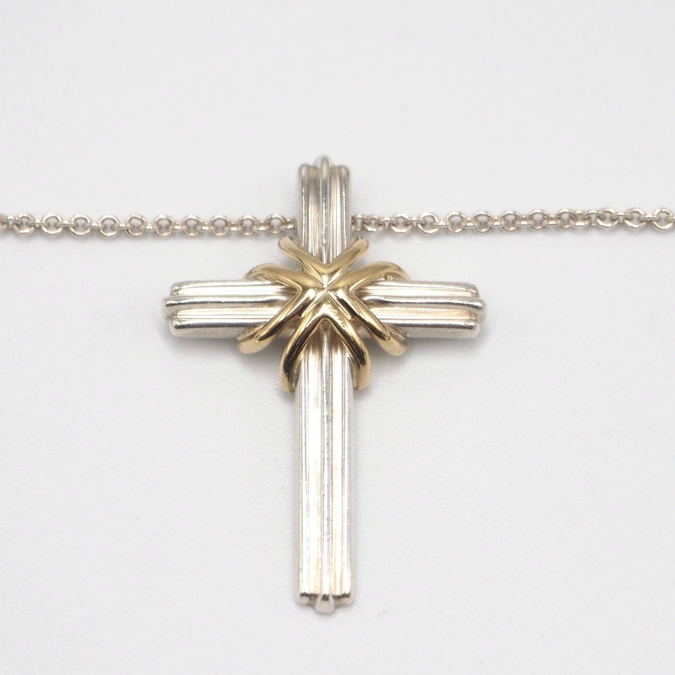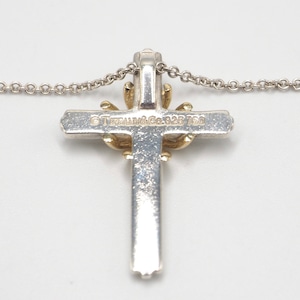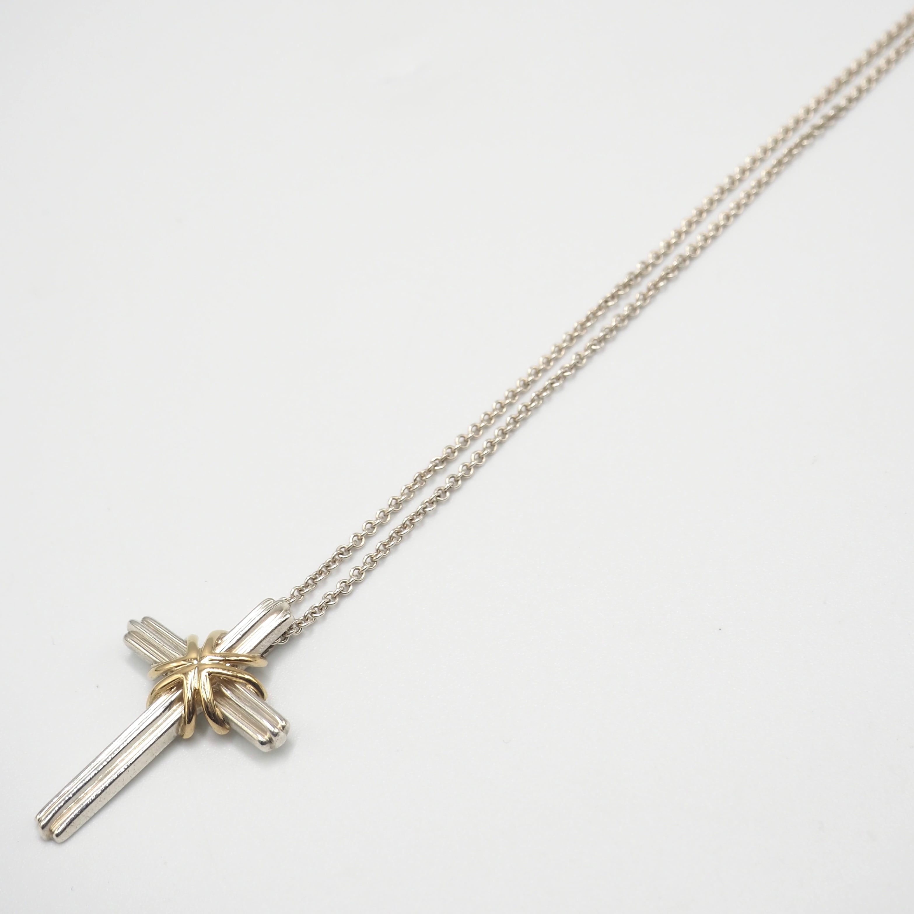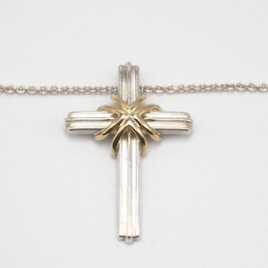 3/9掲載 Tiffany&Co. シグネチャークロス コンビ ネックレス シルバー925 K18 ティファニー