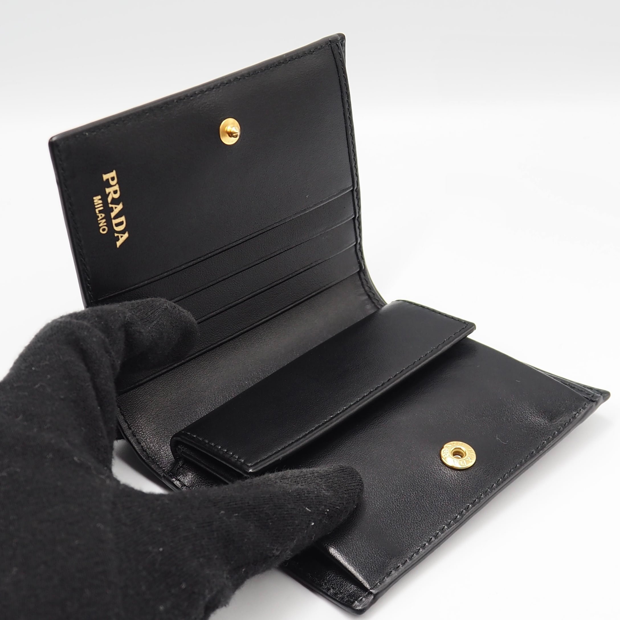 3/14掲載 PRADA ヴィッテロムーブ トライアングル ウォレット 財布 レザー ブラック プラダ