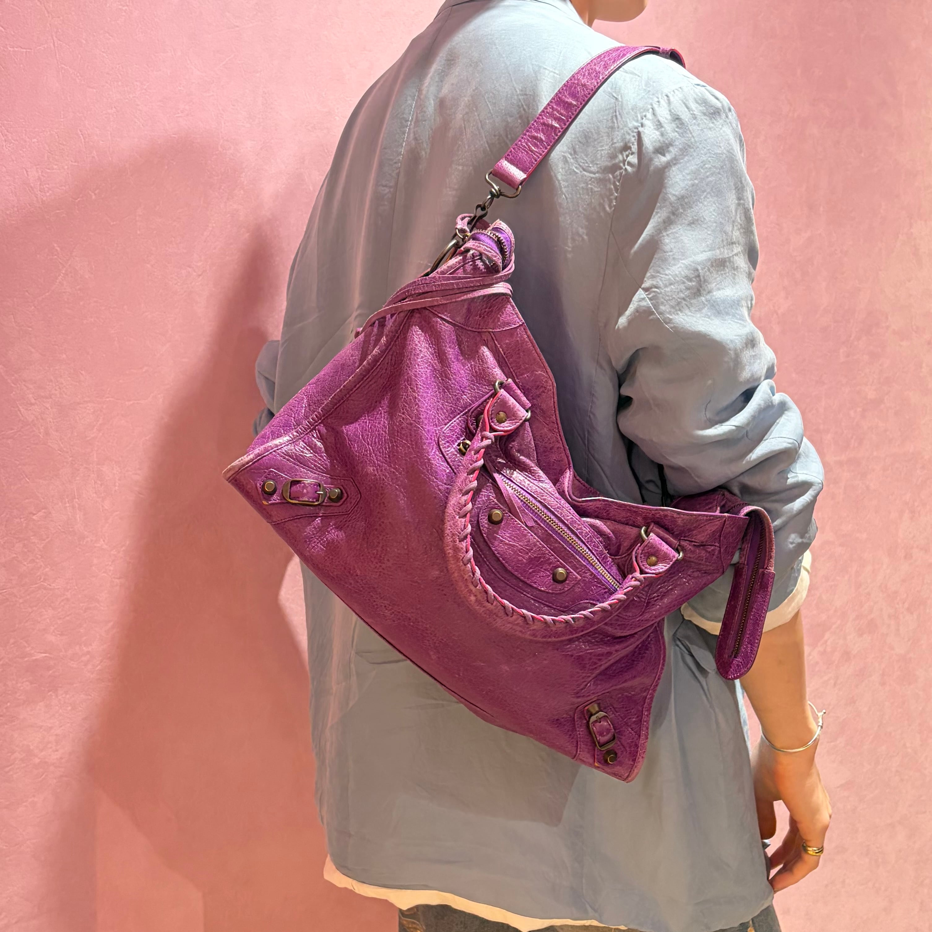 BALENCIAGA ザ・シティ 2WAYハンドバッグ パープル レザー バレンシアガ