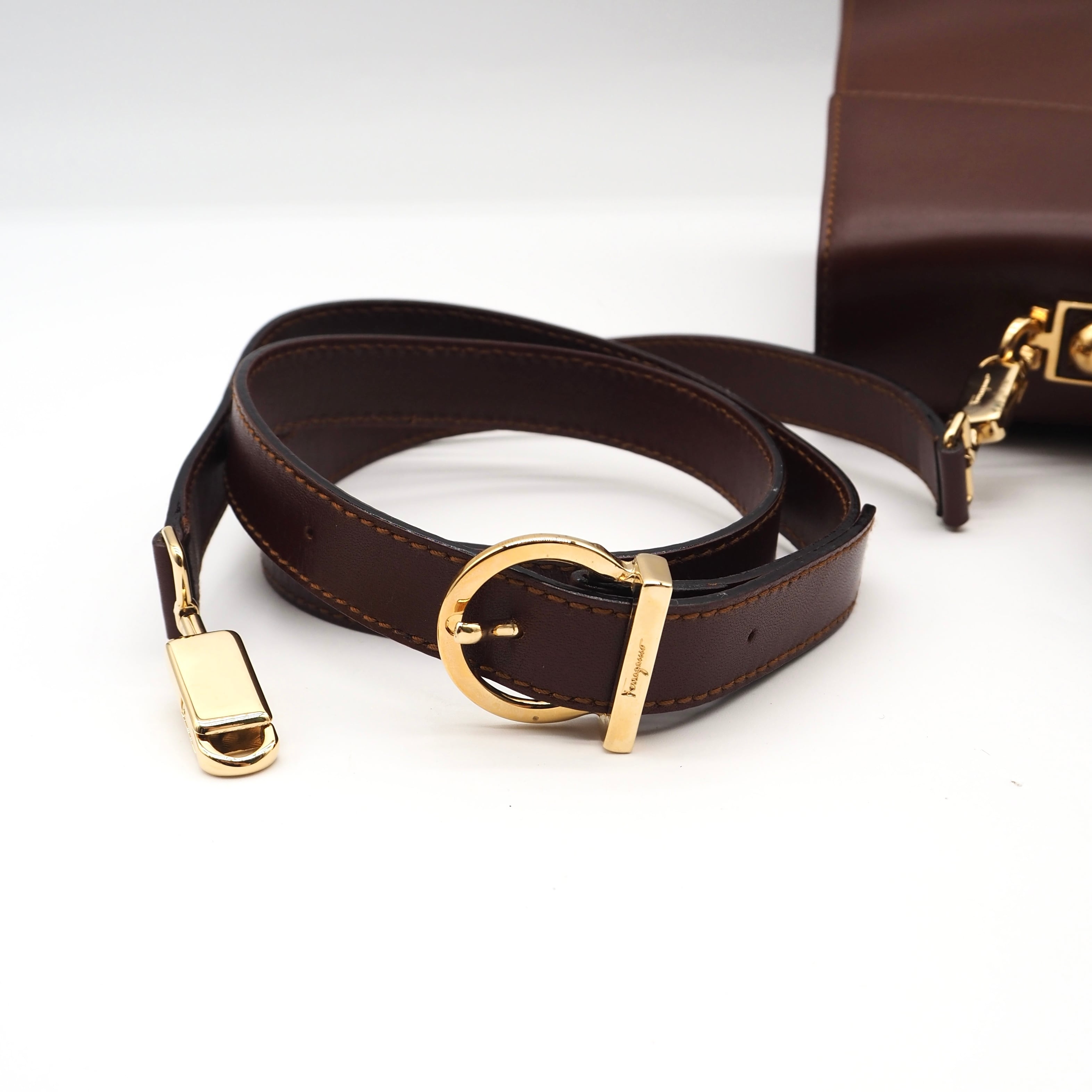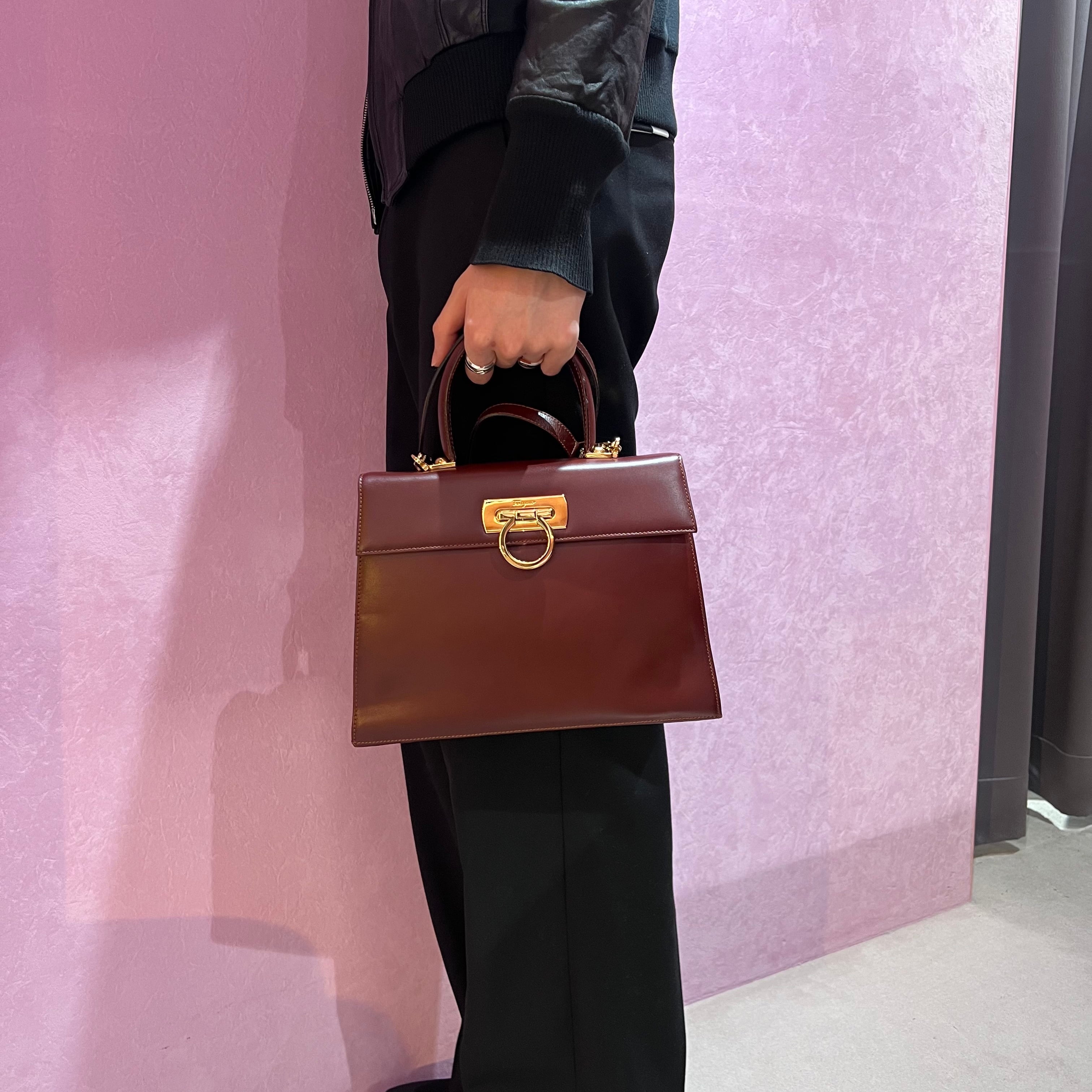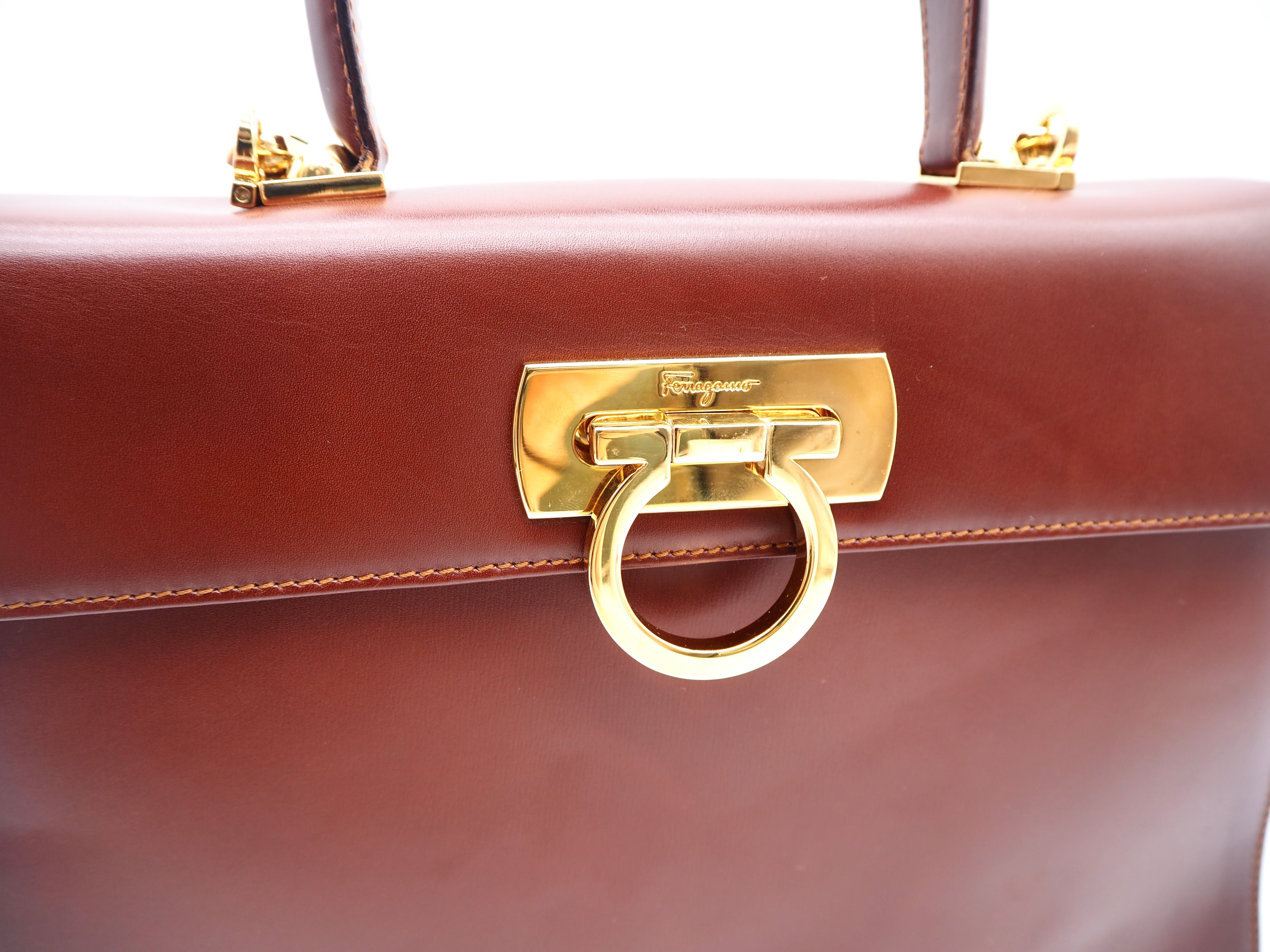 Ferragamo ガンチーニ ハンドバック ショルダーバッグ フェラガモ レザー ブラウン