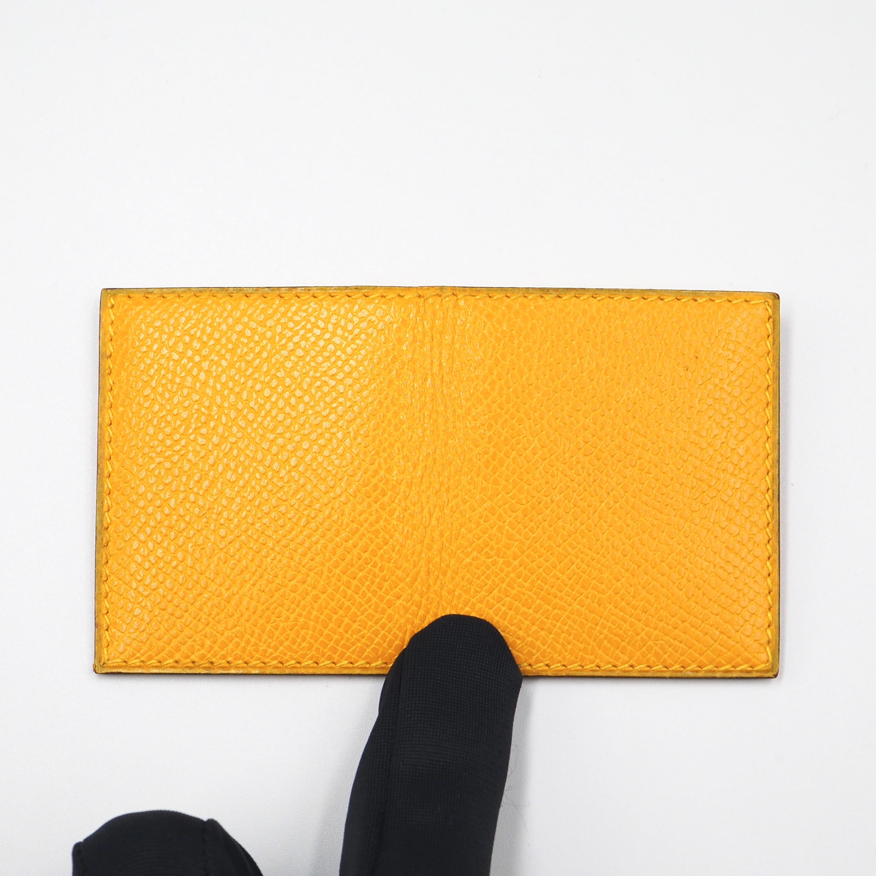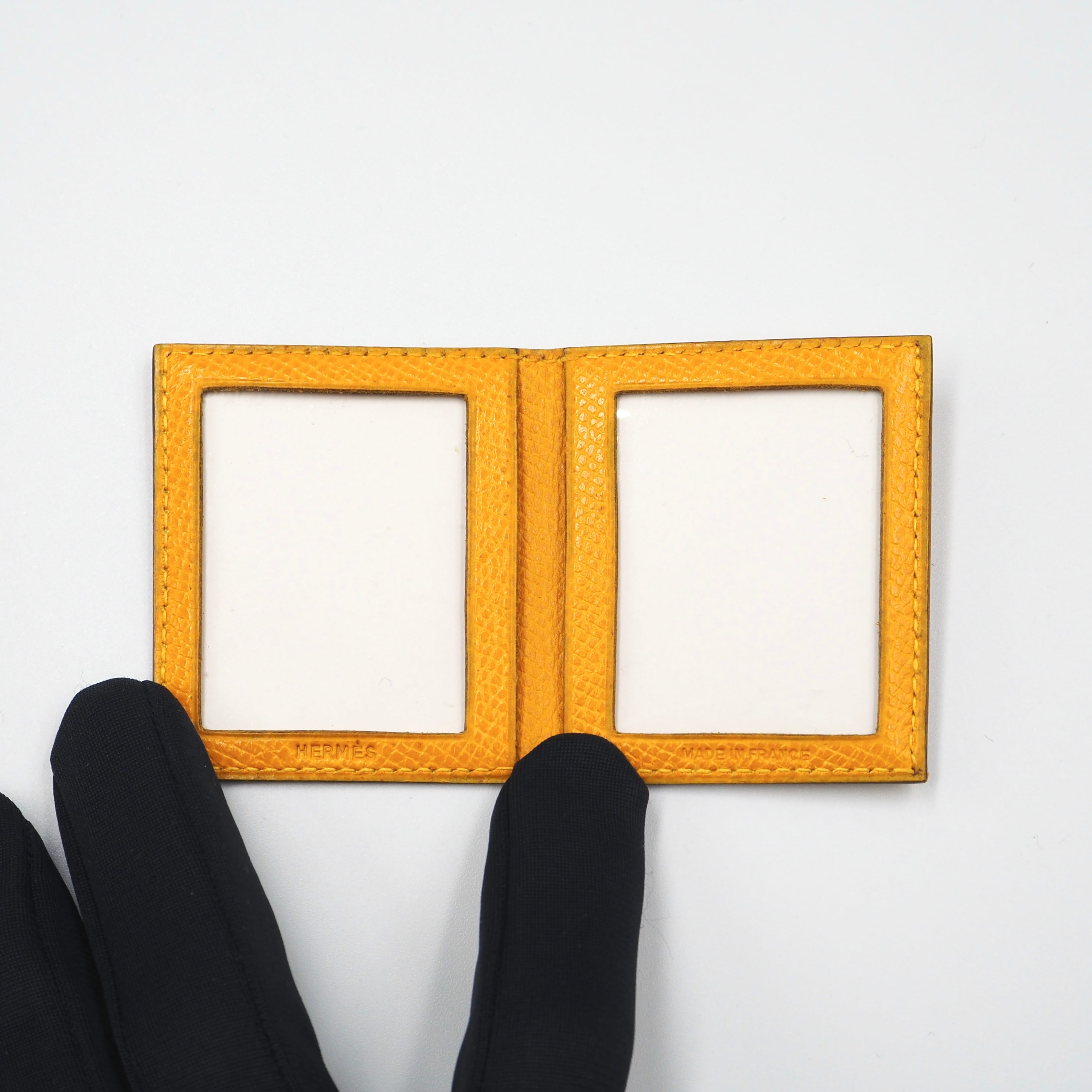 エルメス独自のカラーコードであるジョーヌアンブル。ジョーヌはフランス語で「黄色」、アンブルは「琥珀」。透明感のある黄褐色を指します。大切なペットの写真などをお守りのように持ち歩けるアイテムです。