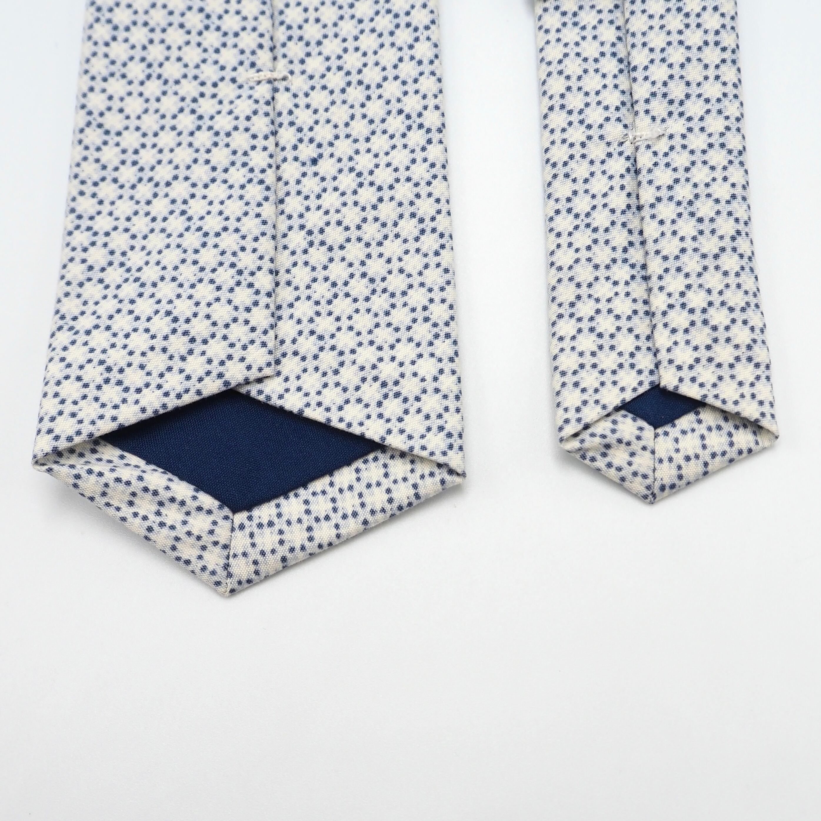 素材の70%がコットンを占めているため、シルクのネクタイに比べてシワがつきにくく、マットな風合いのためカジュアルな雰囲気を与えてくれます。色味も淡い色合いなのでネクタイの堅いフォーマルな印象を緩和してくれます。